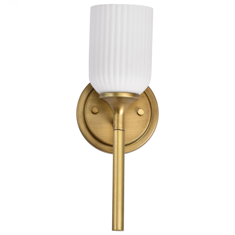 Solara; 1 Light Wall Sconce; Natural Brass Finish; Frosted Ribbed Glass