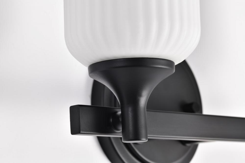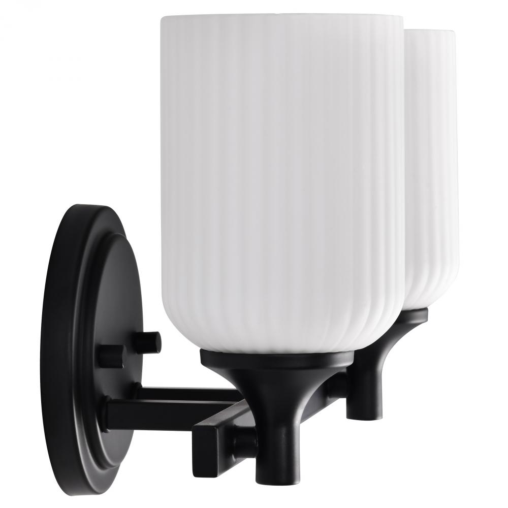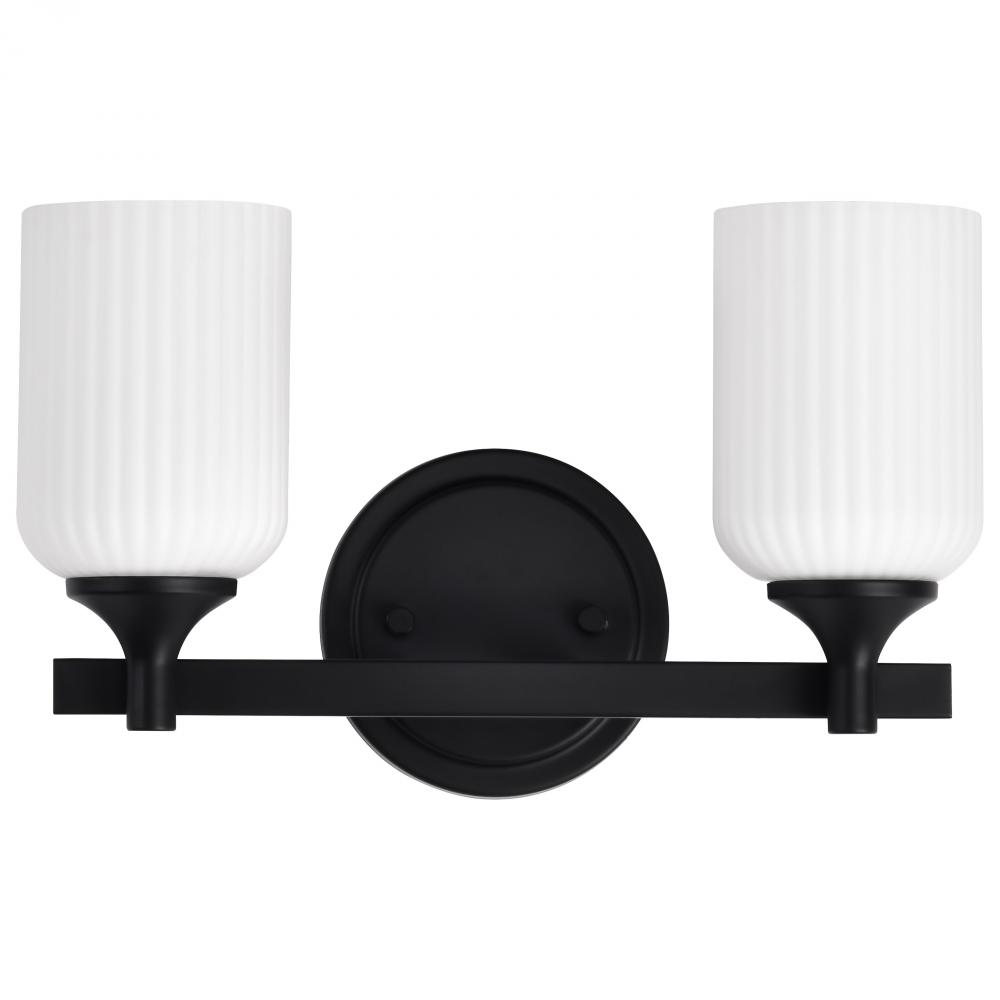 Solara; 2 Light Vanity; Matte Black Finish; Frosted Ribbed Glass