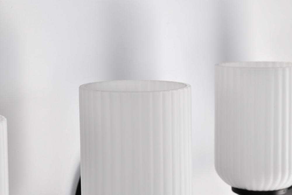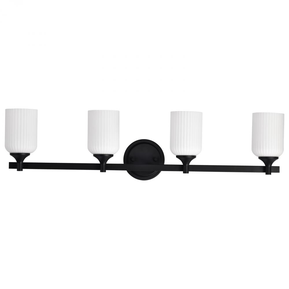 Solara; 4 Light Vanity; Matte Black Finish; Frosted Ribbed Glass