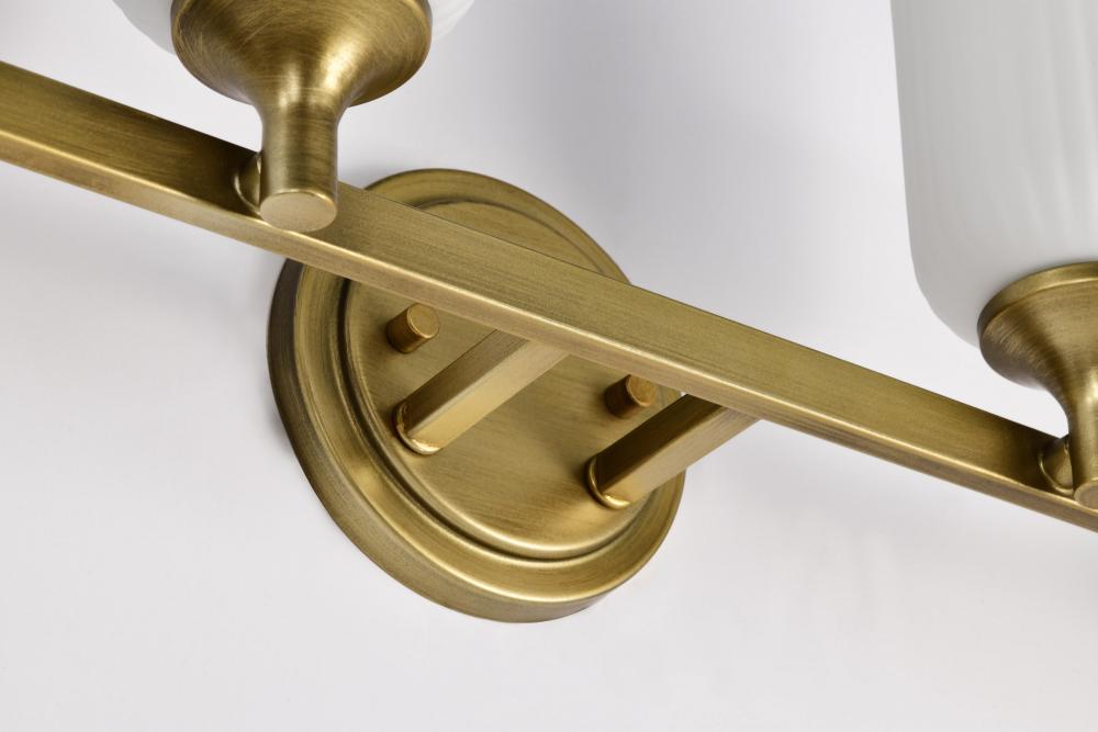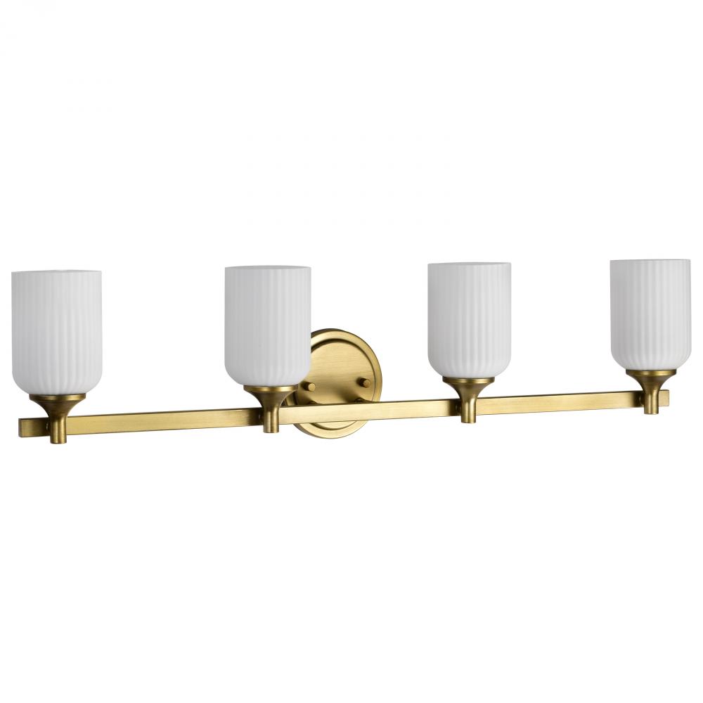 Solara; 4 Light Vanity; Natural Brass Finish; Frosted Ribbed Glass