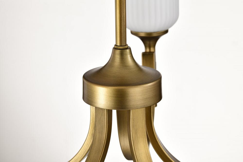 Solara; 5 Light Chandelier; Natural Brass Finish; Frosted Ribbed Glass