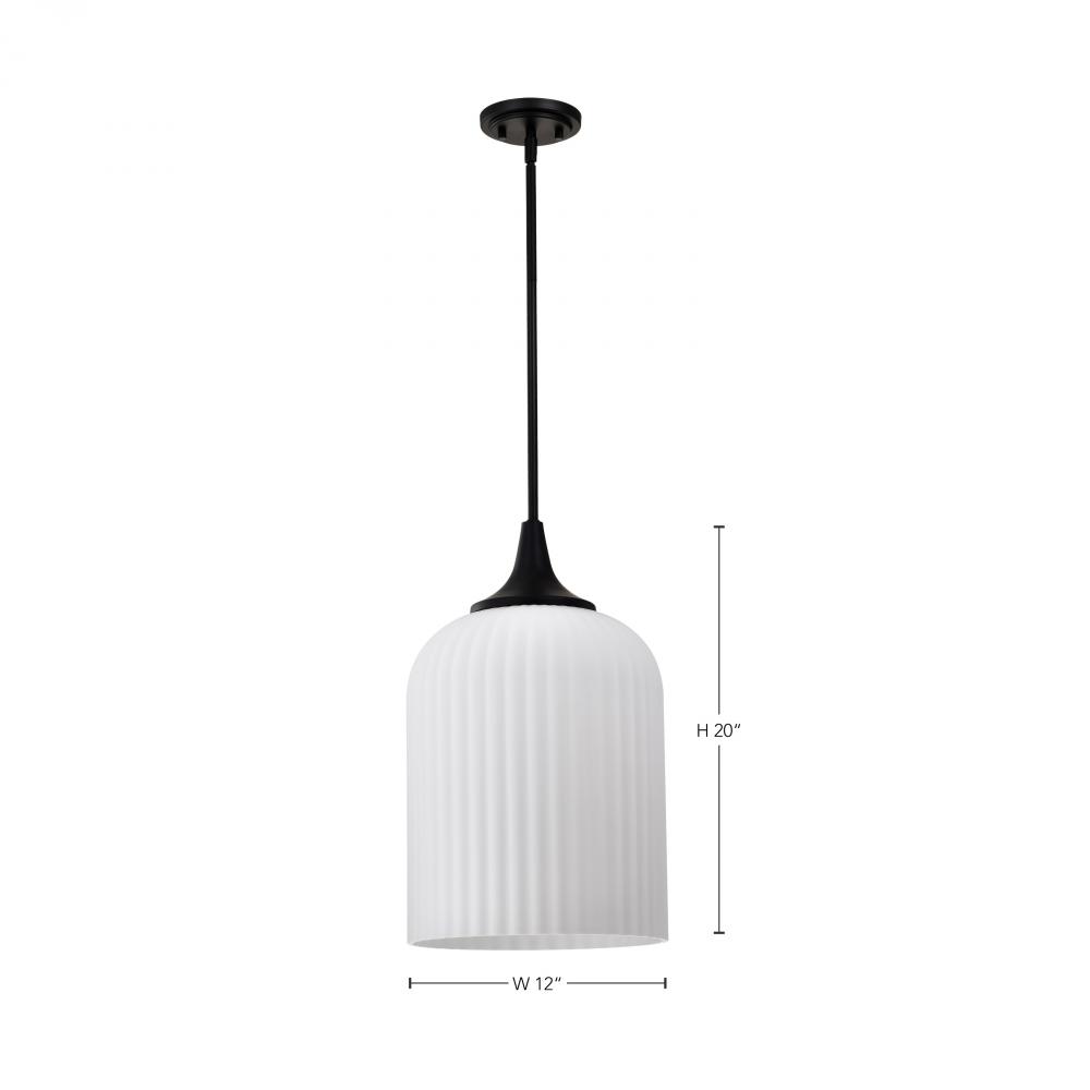 Solara; Pendant; Matte Black Finish; Frosted Ribbed Glass