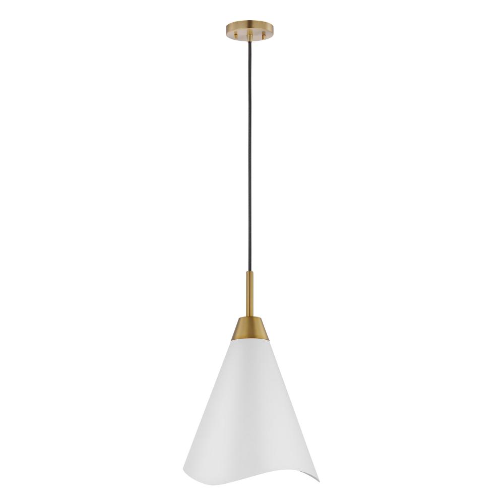 Tango; 1 Light; Medium Pendant; Matte White with Burnished Brass
