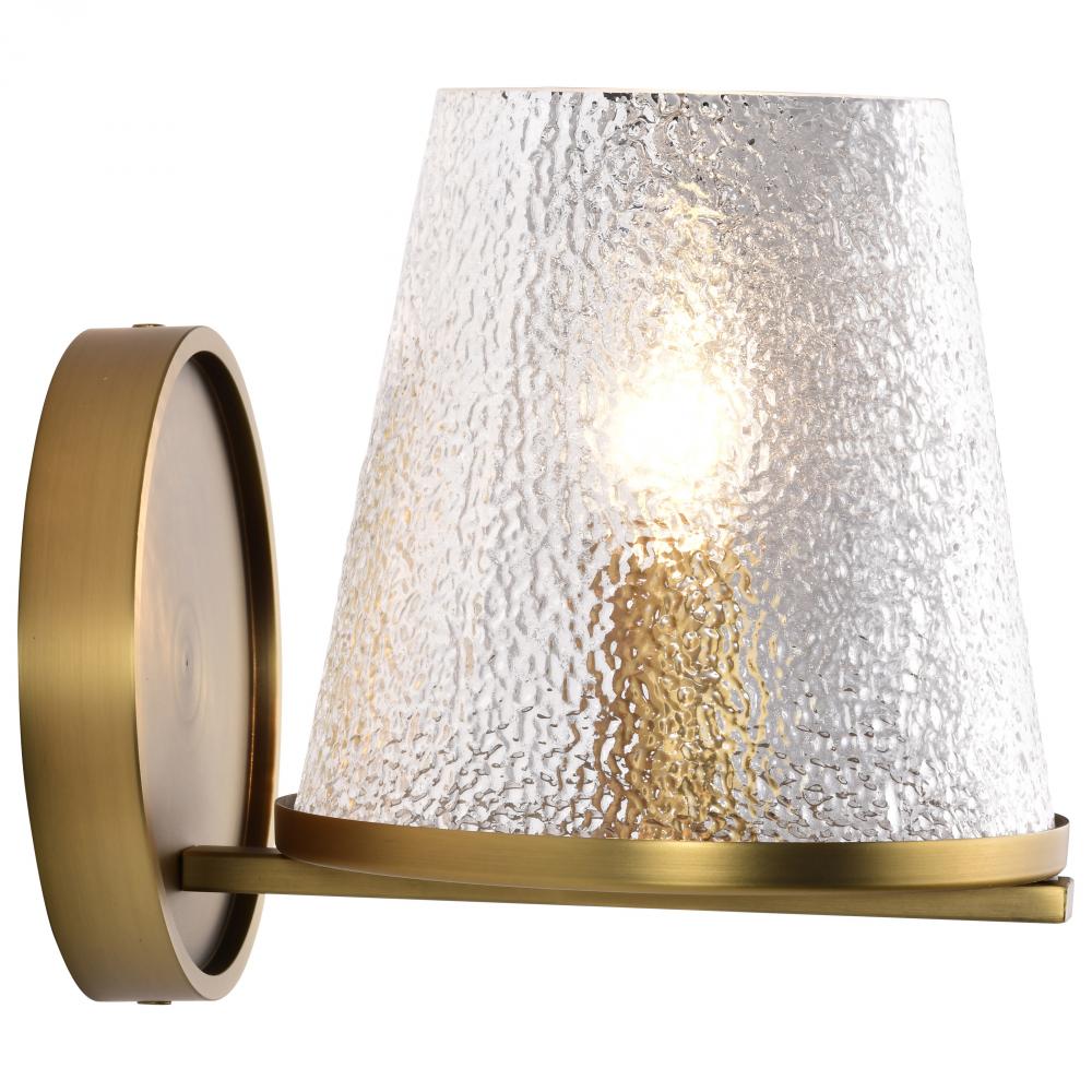 Valentine; 1 Light Vanity; Vintage Brass Finish; Hammered Glass