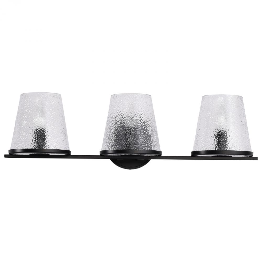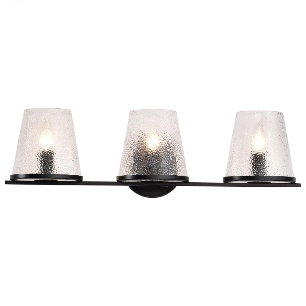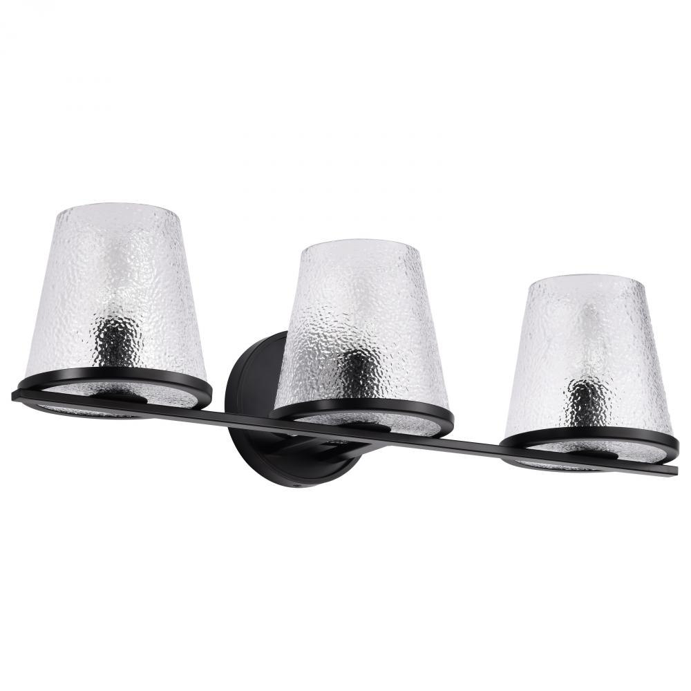 Valentine; 3 Light Vanity; Black Finish; Hammered Glass