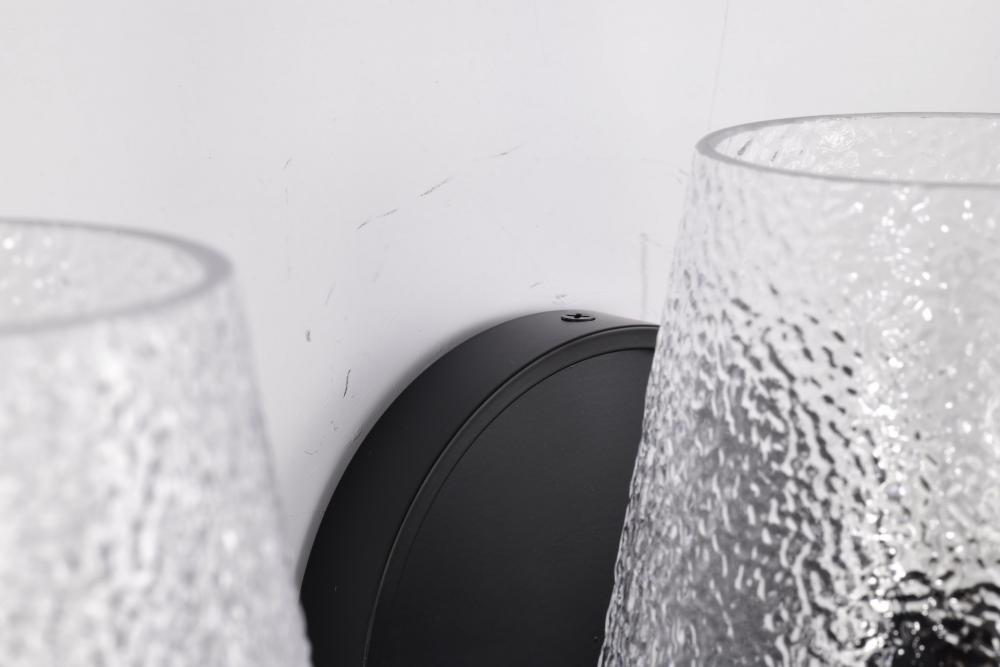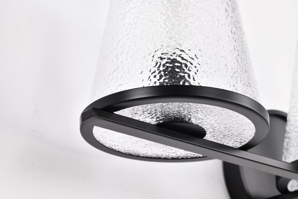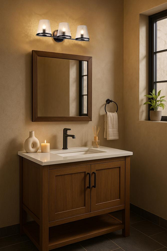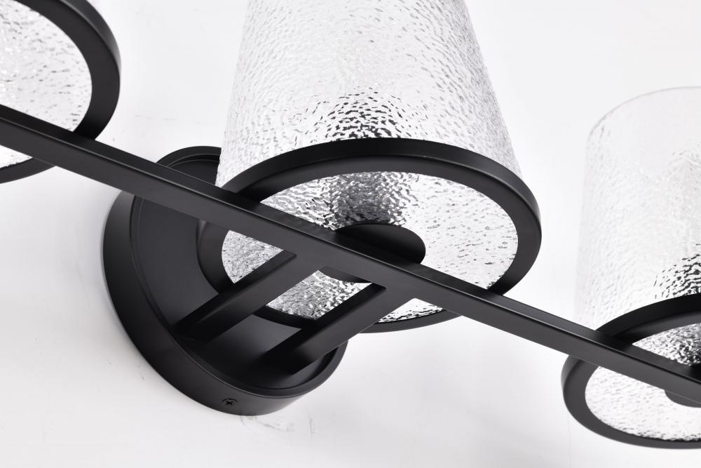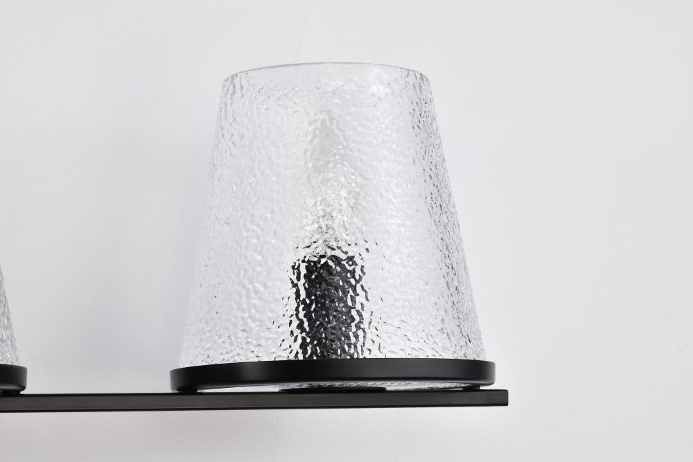 Valentine; 3 Light Vanity; Black Finish; Hammered Glass