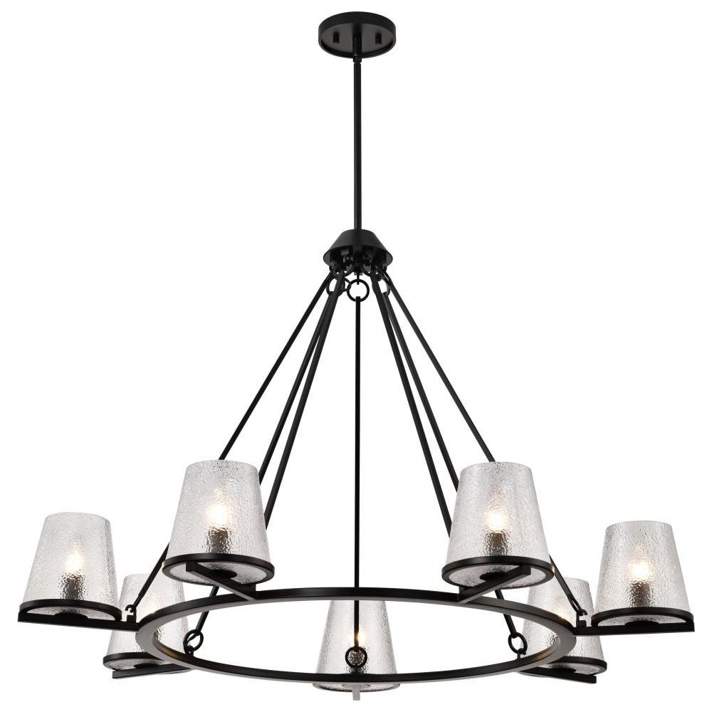 Valentine; 7 Light Chandelier; Black Finish; Hammered Glass