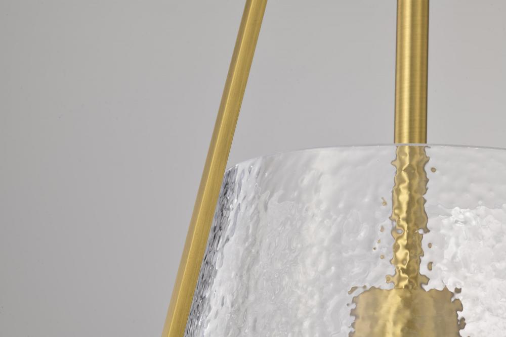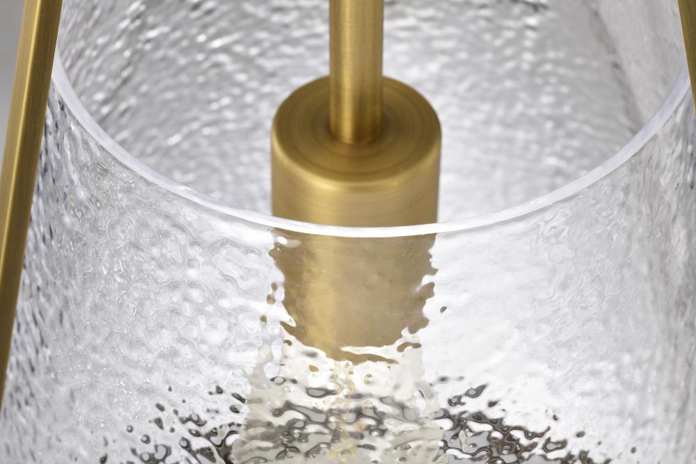 Valentine; Medium Pendant; Vintage Brass Finish; Hammered Glass