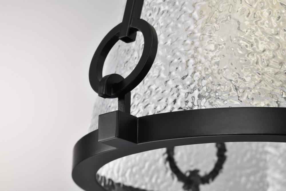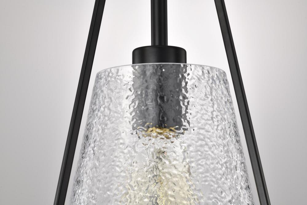 Valentine; Small Pendant; Black Finish; Hammered Glass