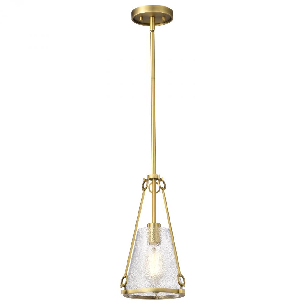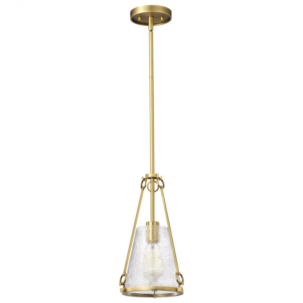 Valentine; Small Pendant; Vintage Brass Finish; Hammered Glass