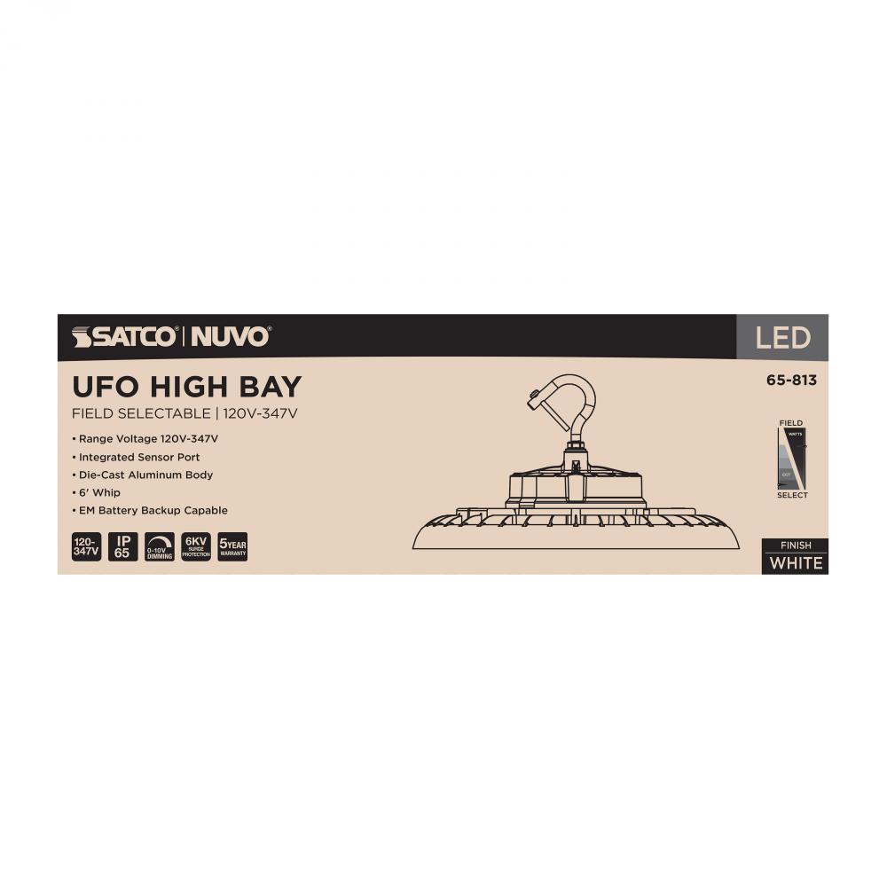 Wattage 150W/175W/200W and CCT Selectable 3K/4K/5K LED UFO High Bay; 120-347 Volt; White Finish by Nuvo