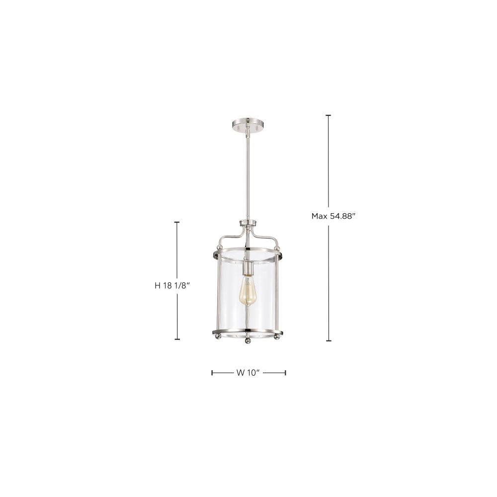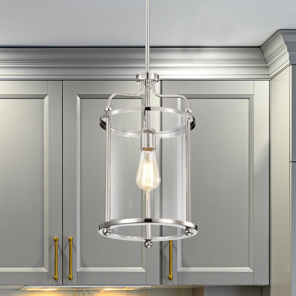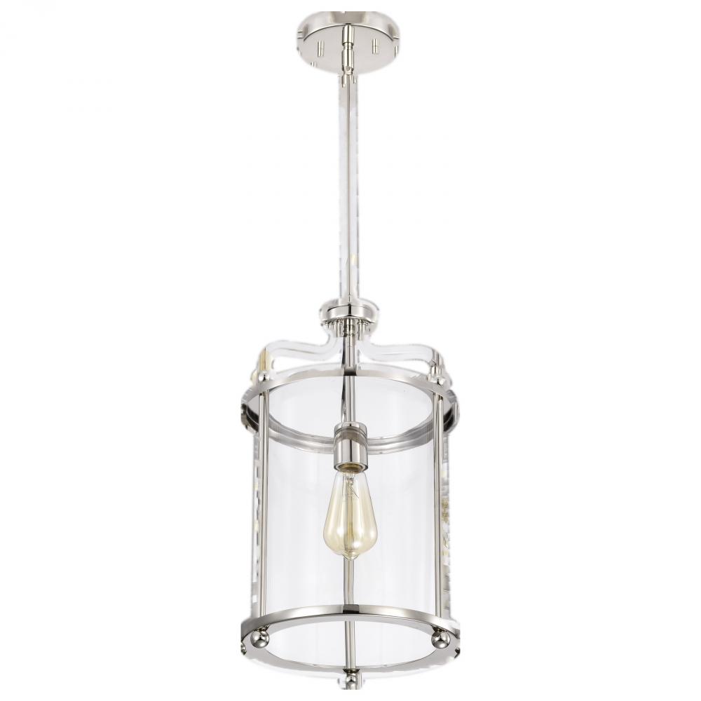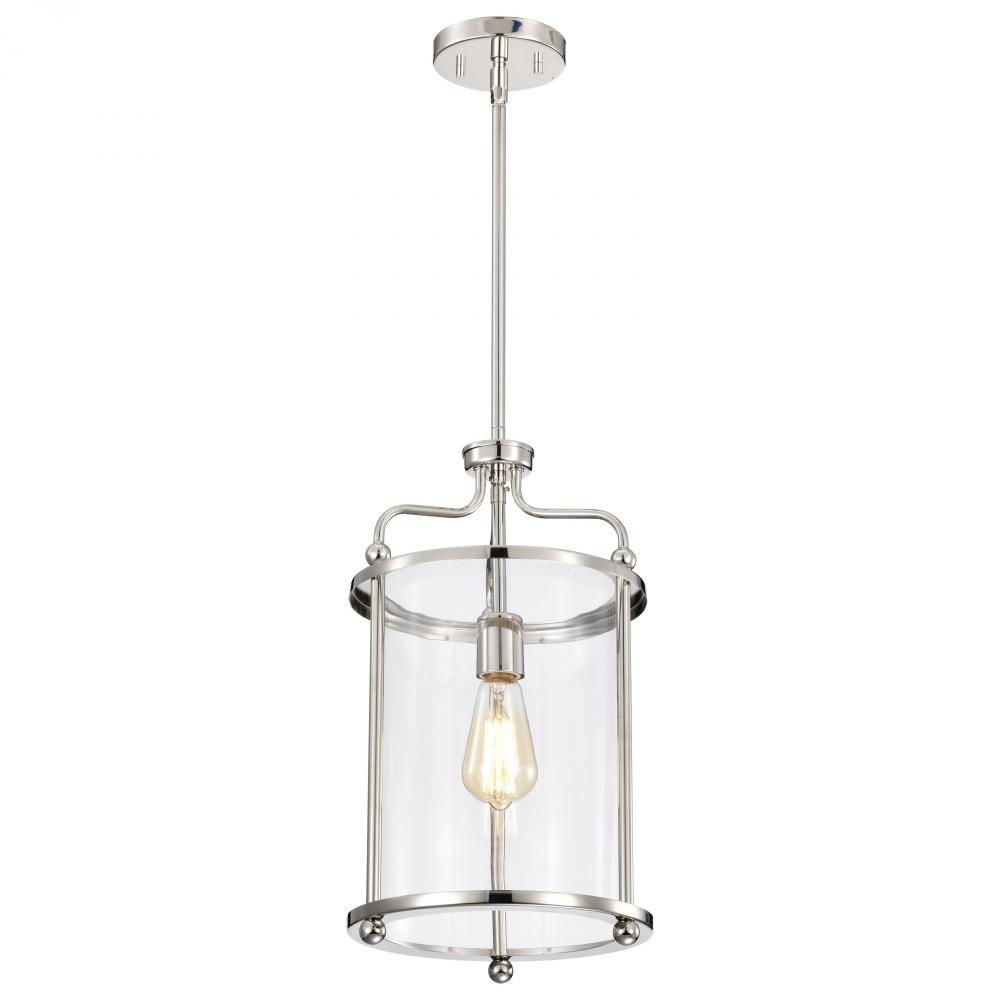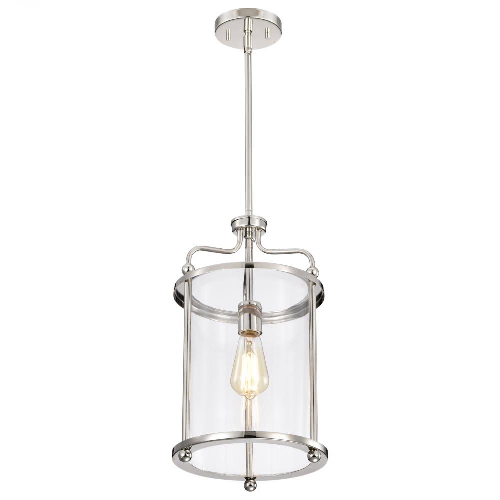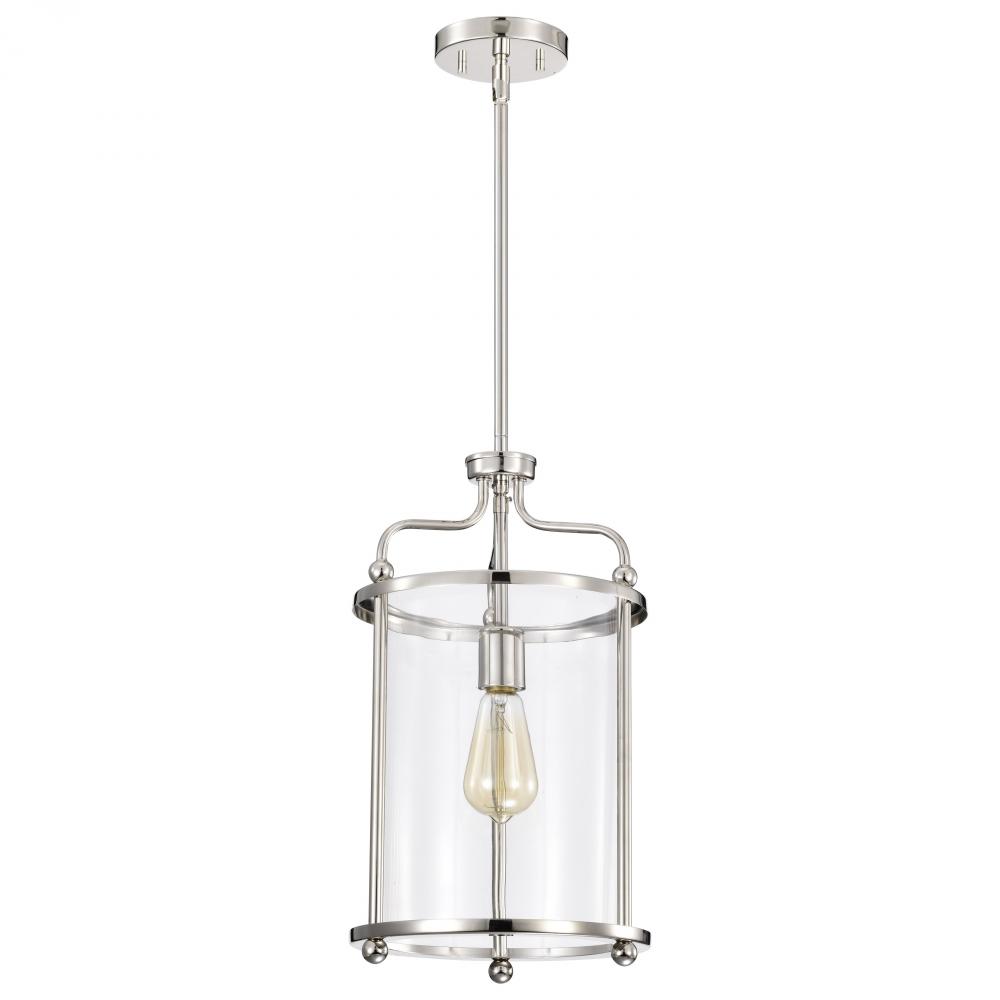 Yorktown 1 Light Pendant; Polished Nickel Finish; Clear Glass