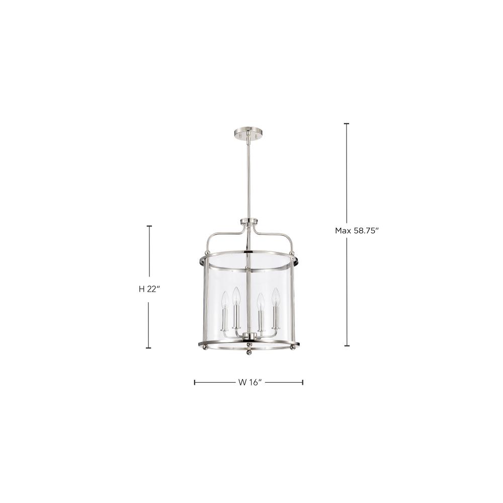 Yorktown 4 Light Pendant; Polished Nickel Finish; Clear Glass
