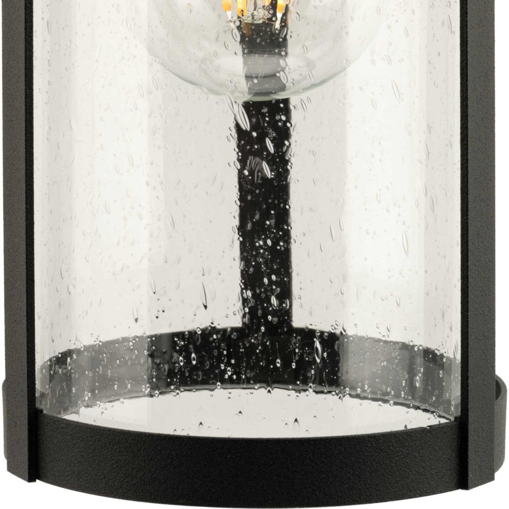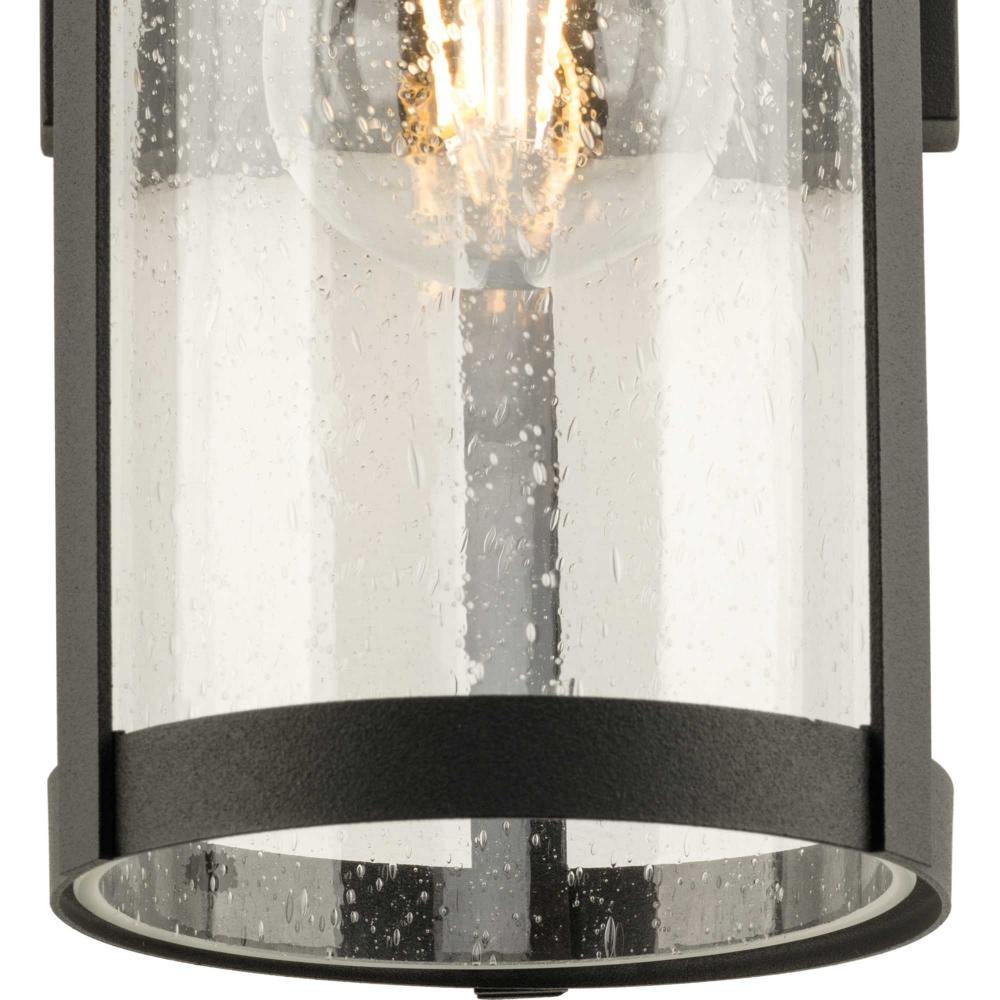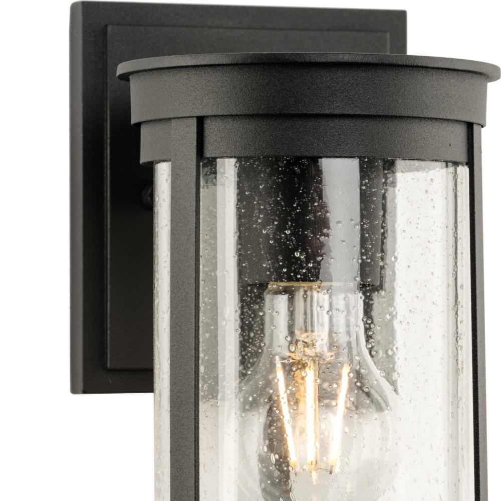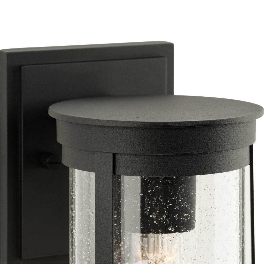 The Belden Medium Wall Lantern is defined by crisp linear segments encircling a clear seeded glass diffuser that casts a beautiful glow to porches, patios and outdoor living areas. Classic and contemporary, the design has understated elegance and modern appeal.Its clean circular silhouette is coated in a crisp black finish.