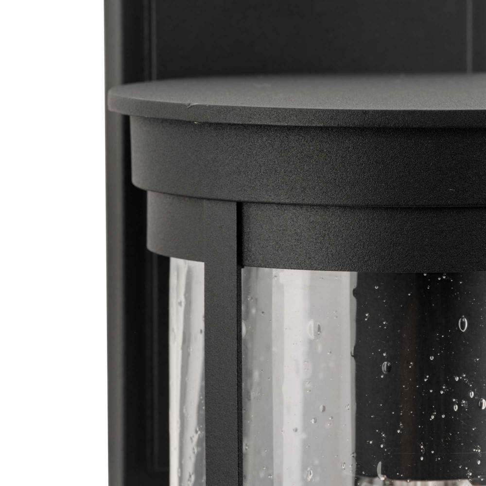 The Belden Large Wall Lantern is defined by crisp linear segments encircling a clear seeded glass diffuser that casts a beautiful glow to porches, patios and outdoor living areas. Classic and contemporary, the design has understated elegance and modern appeal.Its clean circular silhouette is coated in a crisp black finish.