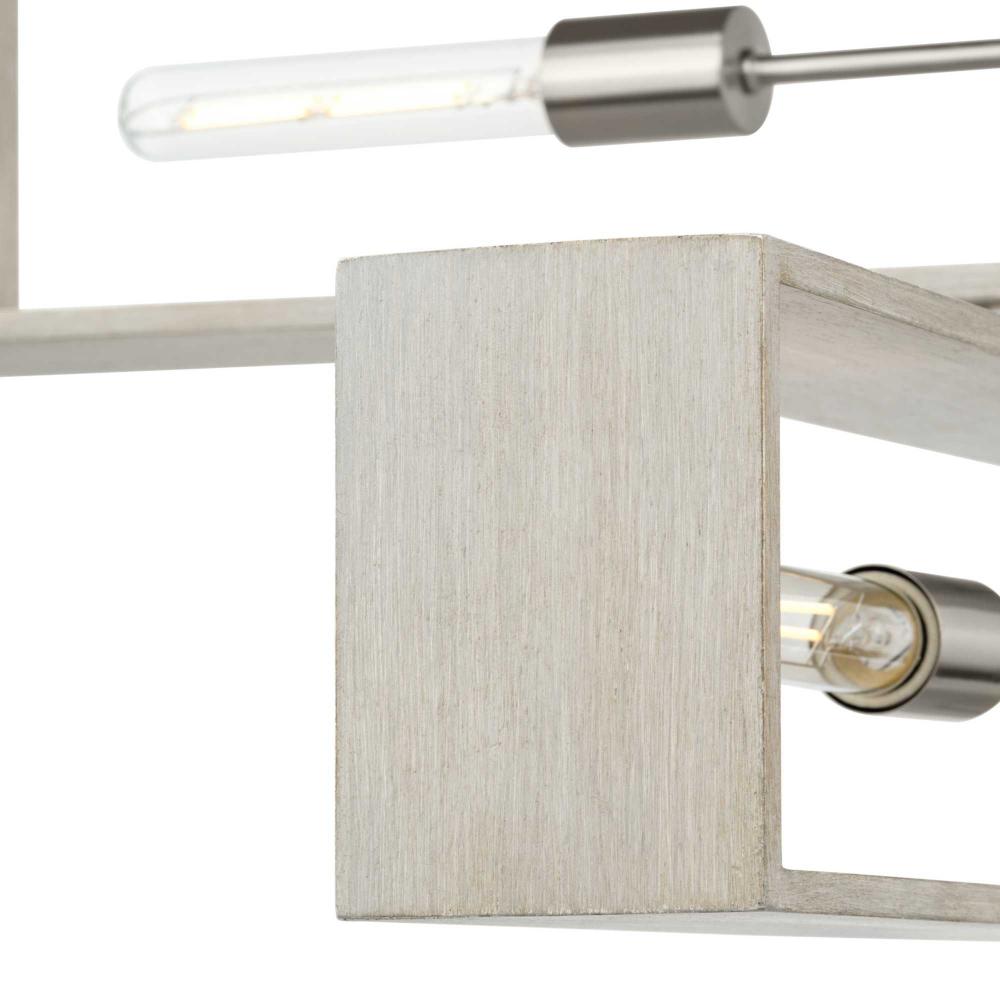 Boundary Collection Four-Light Brushed Nickel Grey Washed Oak Modern Chandelier