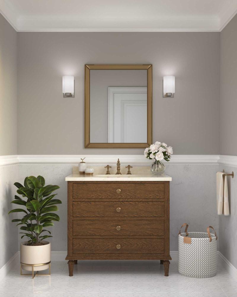 Its elegant, hexagonal form brings style to bathrooms, hall, foyers and dining room walls
