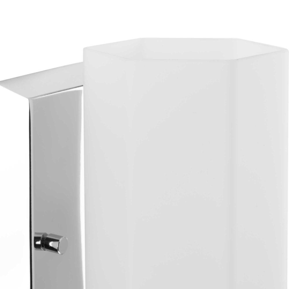 The Estrada One-Light Vanity Light features a hexagonal motif, one of the most beautiful patterns that occurs frequently in nature. This classic shape is experiencing a revival in popularity as it is both timeless and modern at the same time. A faceted opal glass shade is fitted atop a matching metal base finished in Polished Chrome.