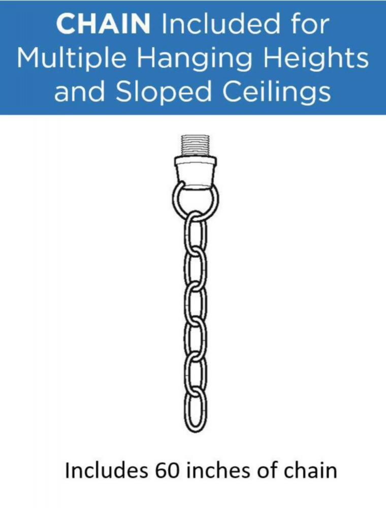 Includes 60 in. of chain for a variety of ceiling heights and can be used on a sloped ceiling