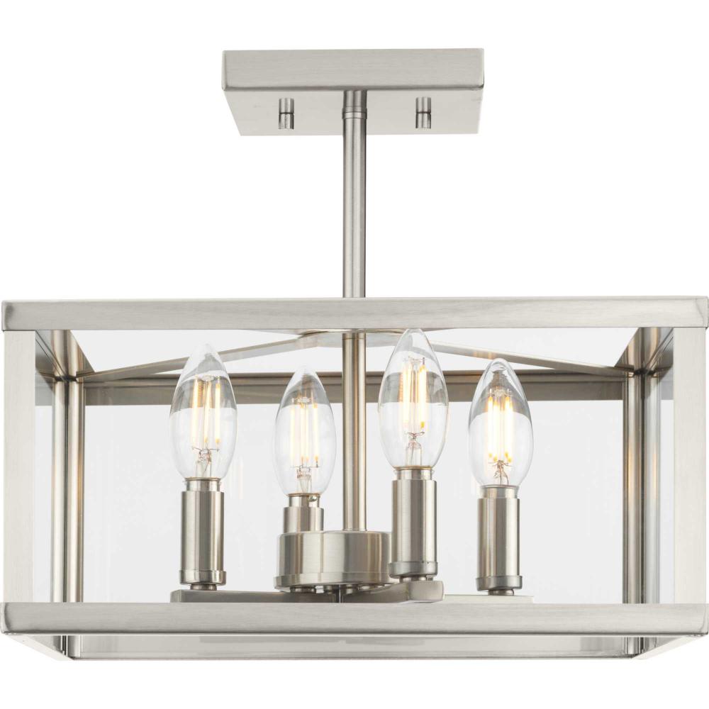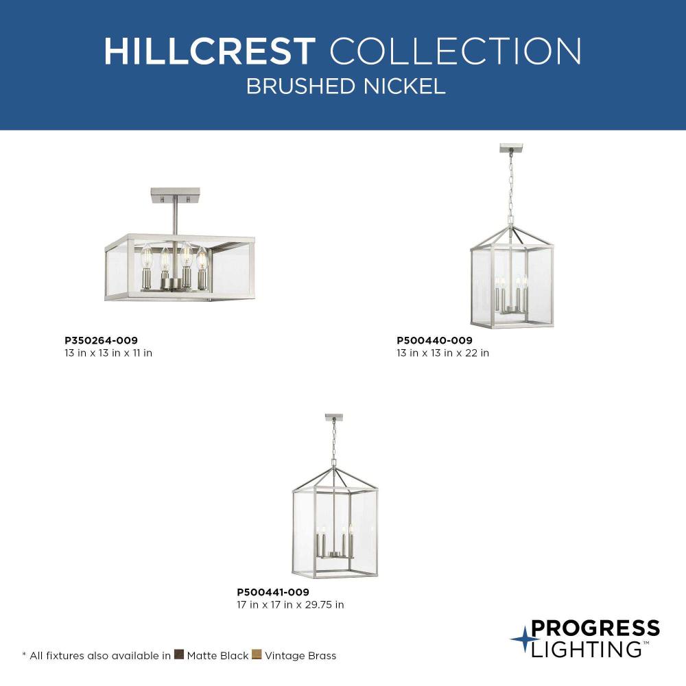 Hilllcrest Collection 13 in. Four-Light Brushed Nickel Transitional Semi-Flush Mount Light by Progress