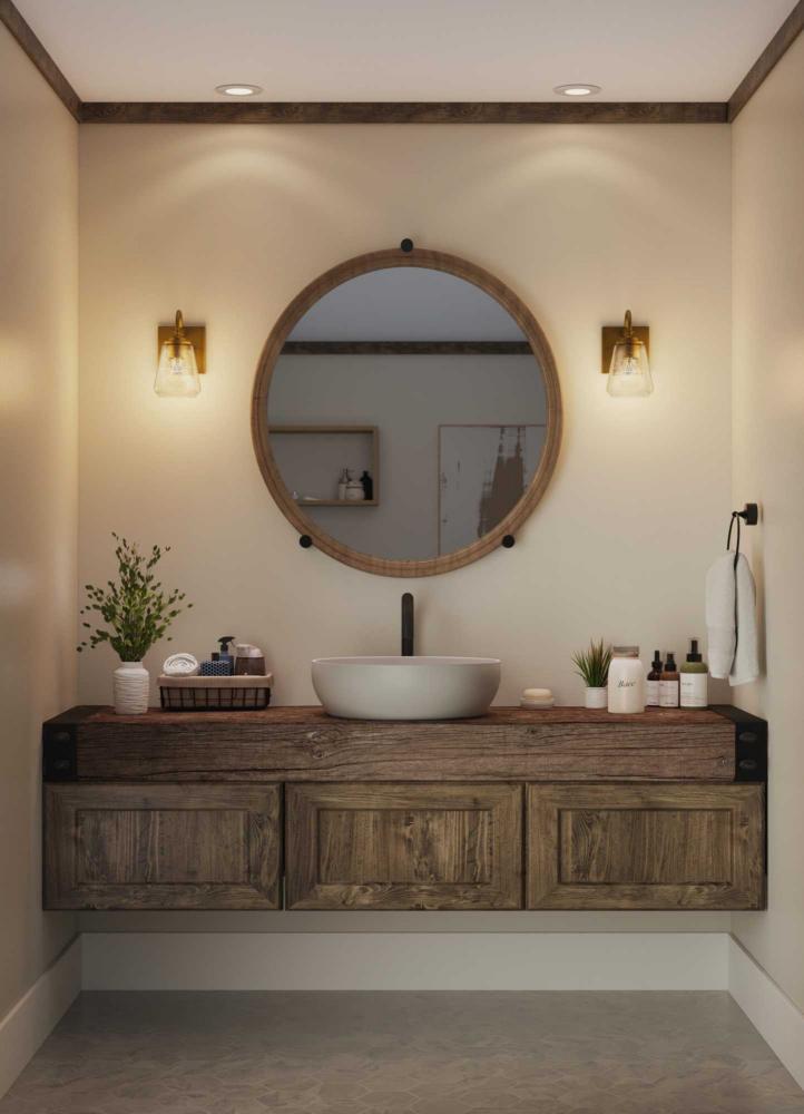 The fixture's simple style perfectly accents modern farmhouse bathrooms