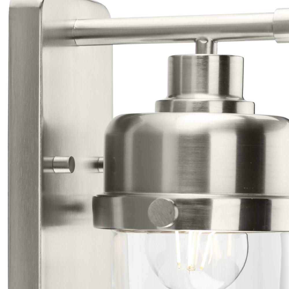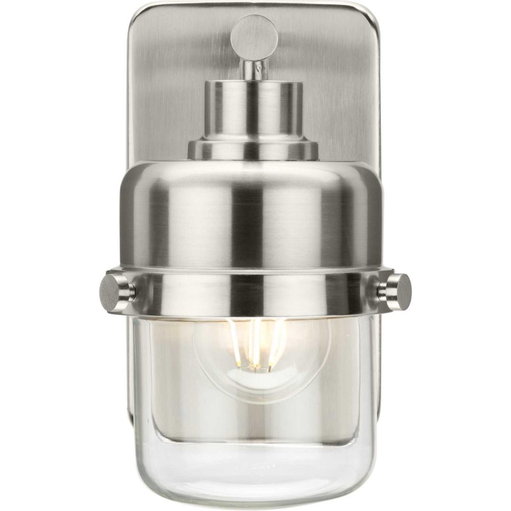 The Beckner Collection reflects mid-century and industrial design, with mechanical knobs and hooded lights finished in subtle brushed nickel. Beckner’s tactile appeal welcomes curiosity and adds depth to bathrooms, hallways and living rooms in mid-century modern, transitional and urban industrial settings. An oblong backplate holds a rod which suspends its vintage-style shade complemented by clear glass, delivering bright illumination while adding a modern touch. This versatile fixture can be mounted up or down, increasing its design flexibility. cULus damp location listed, with a one-year warranty to guarantee your complete satisfaction. Progress Lighting products are designed for exceptional quality, reliability, and functionality.