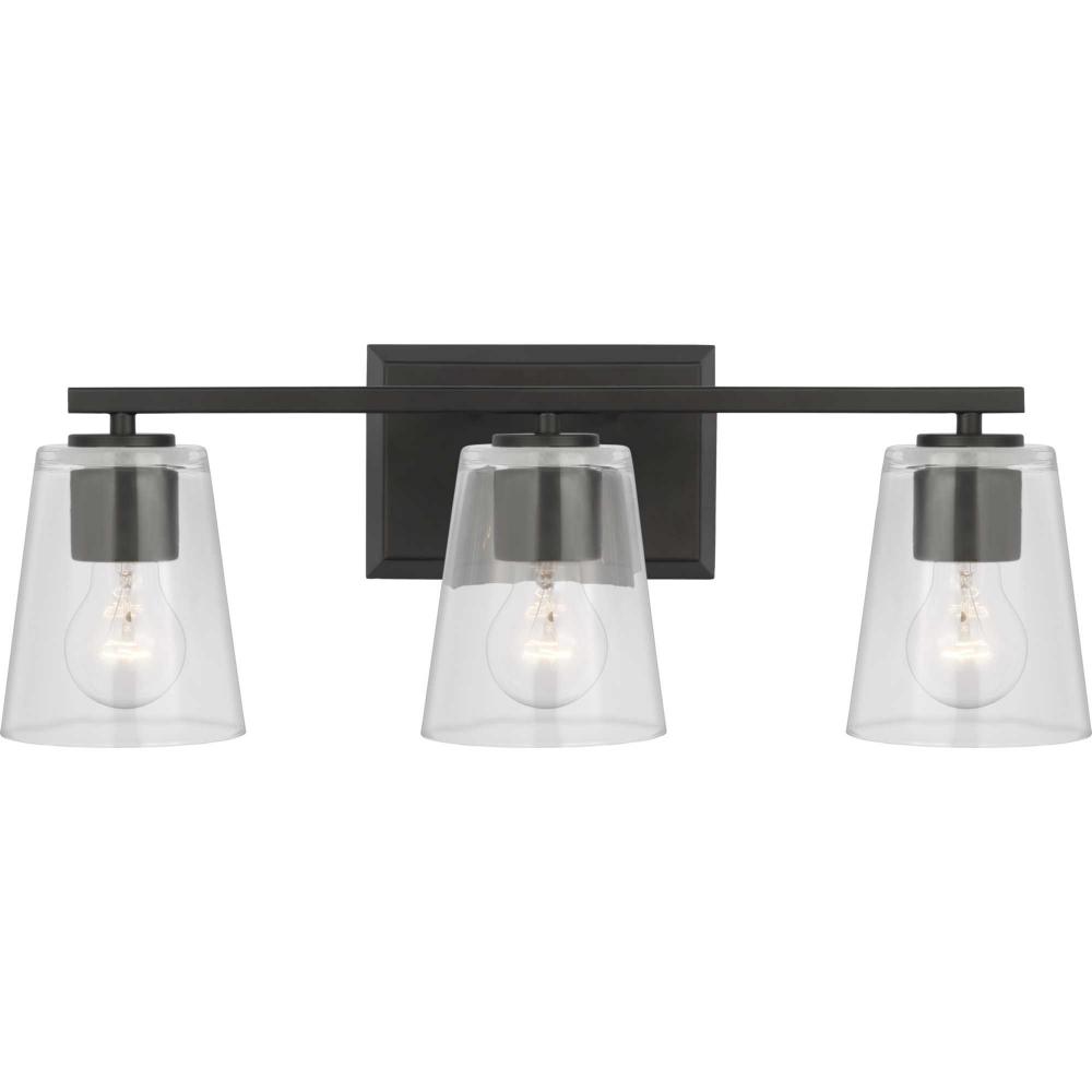 Elegantly extended, the Vertex Collection is composed of angular forms finished in crisp matte black to create a bold design that perfectly complements modern interiors. Glass shades delivers bright illumination to bathrooms and powder rooms in contemporary settings. This versatile fixture can be mounted up or down, increasing its design flexibility. It is cULus damp rated and has a one-year warranty to guarantee your complete satisfaction. Progress Lighting products offer exceptional quality, reliability, and functionality. .