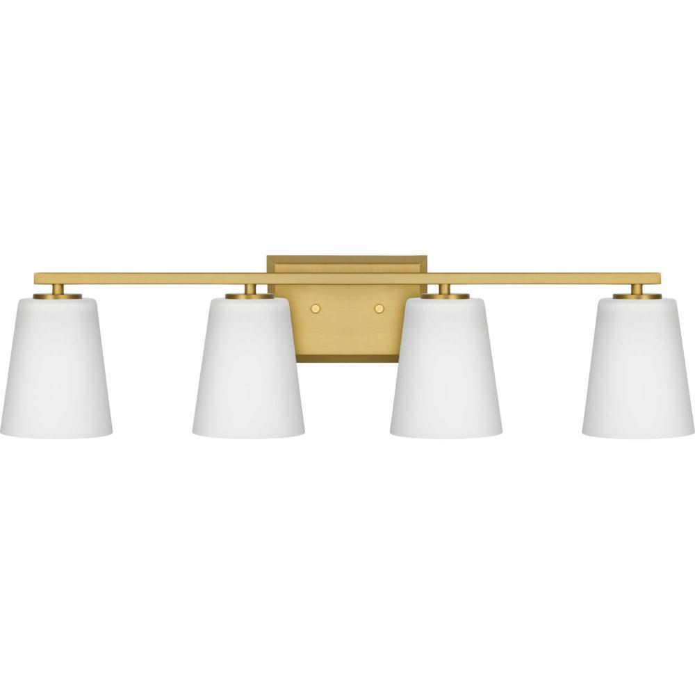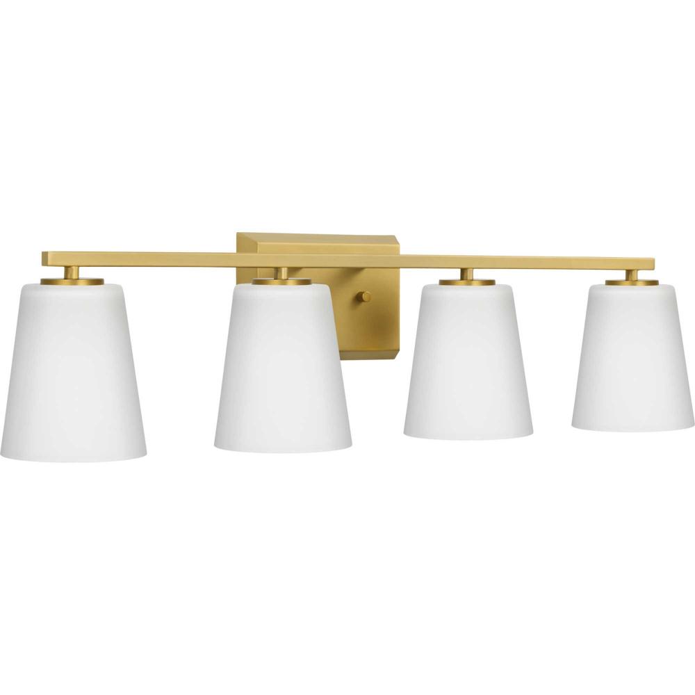 Elegantly extended, the Vertex Collection is composed of angular forms finished in soft brushed gold to create a bold design that perfectly complements modern interiors. Glass shades delivers bright illumination to bathrooms and powder rooms in contemporary settings. This versatile fixture can be mounted up or down, increasing its design flexibility. It is cULus damp rated and has a one-year warranty to guarantee your complete satisfaction. Progress Lighting products offer exceptional quality, reliability, and functionality. .