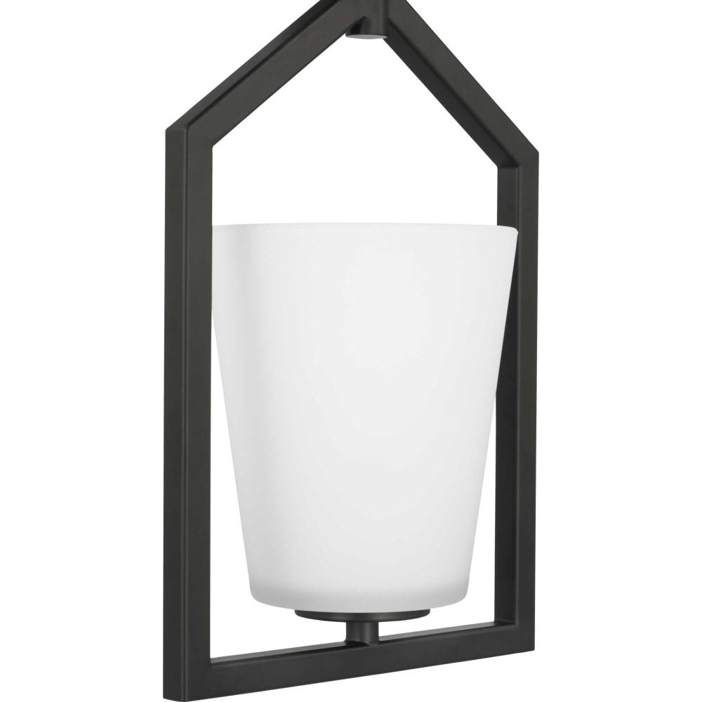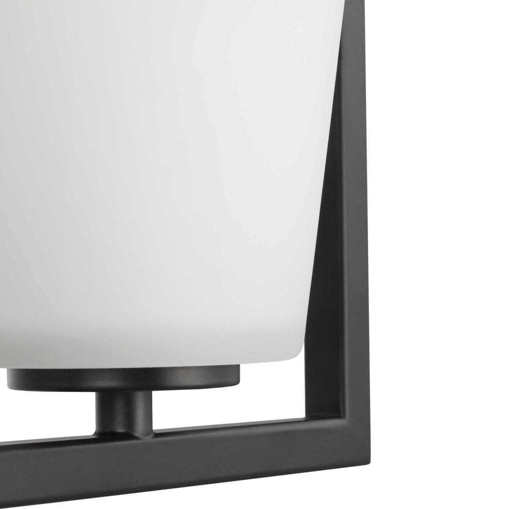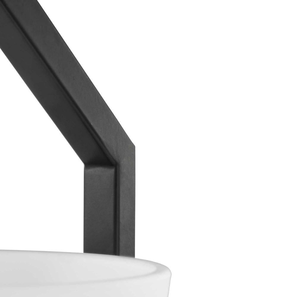 A lovely matte black frame define the fixture's distinct, angular silhouette