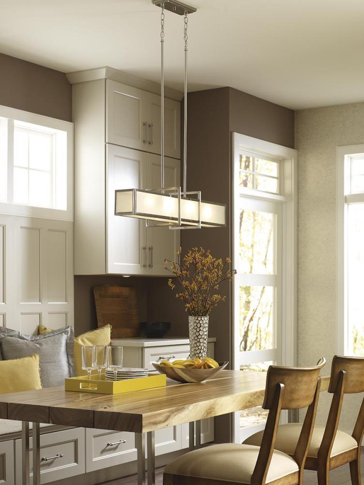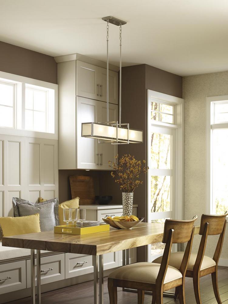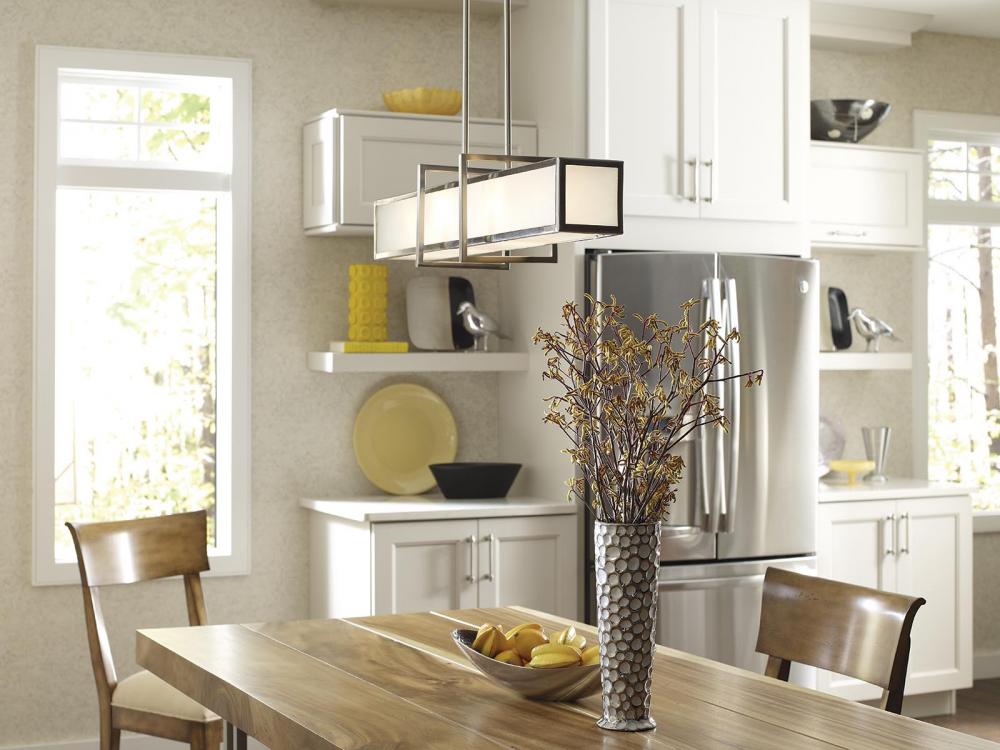 The perfect intersection of rectilinear form and contemporary details. The four-light linear pendant architectural iron framework is finished with white etched glass.