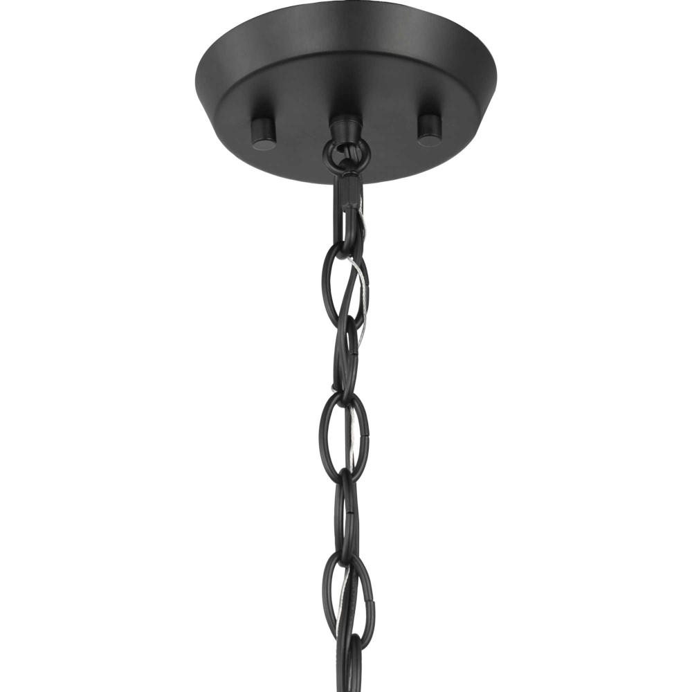 A lovely classic matte black frame define the fixture's distinct, angular silhouette