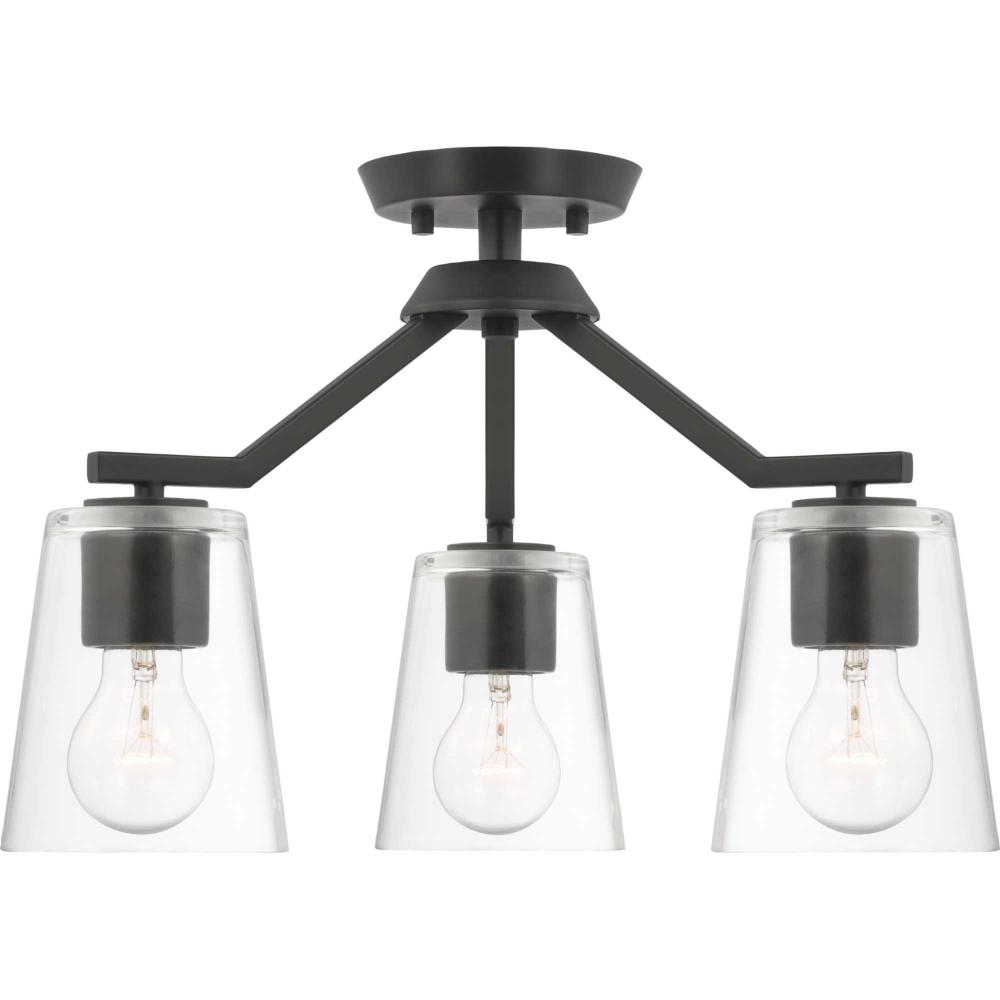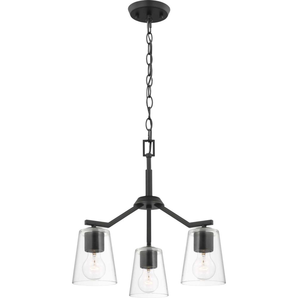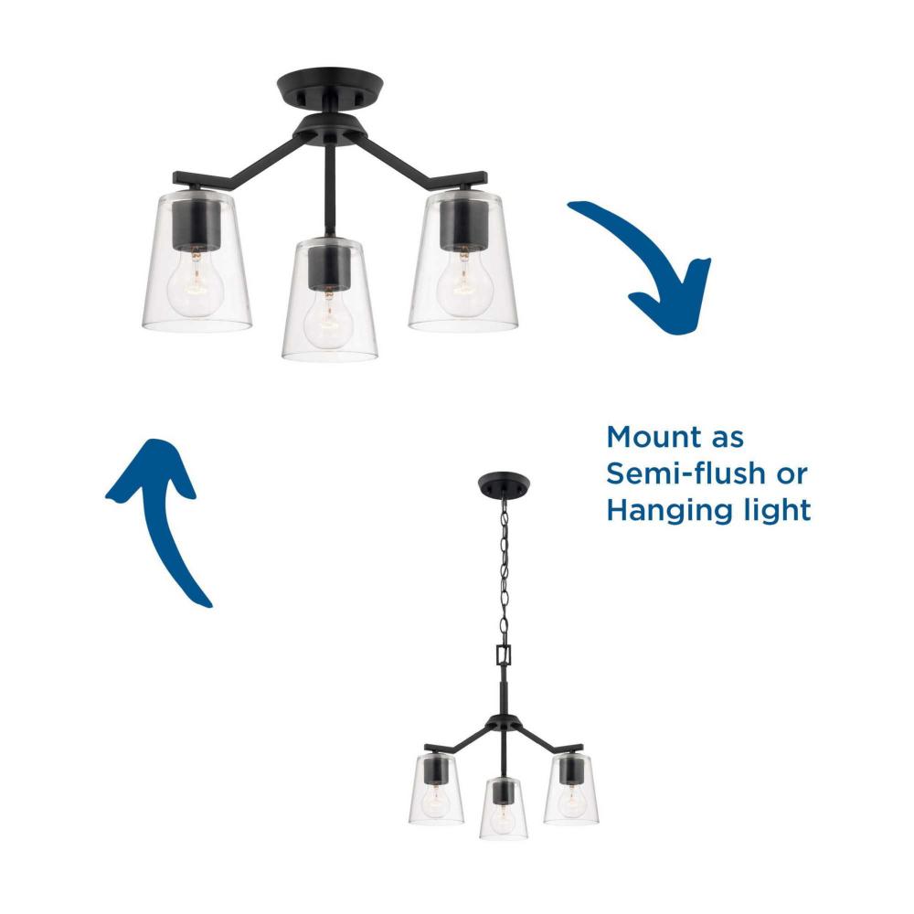Elegantly extended, the Vertex convertible chandelier is composed of angular forms to create a bold design that perfectly complements halls, foyers and breakfast nooks in modern interiors. Its distinctive silhouette is coated in a crisp matte black finish. A clear glass shade offers bright illumination to spaces below. This versatile fixture can be converted to a chandelier using the included 48 inches of chain or installed as a semi-flush mount fixture.