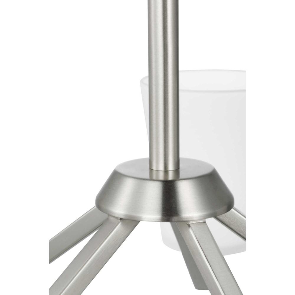A lovely brushed nickel frame define the fixture's distinct, angular silhouette