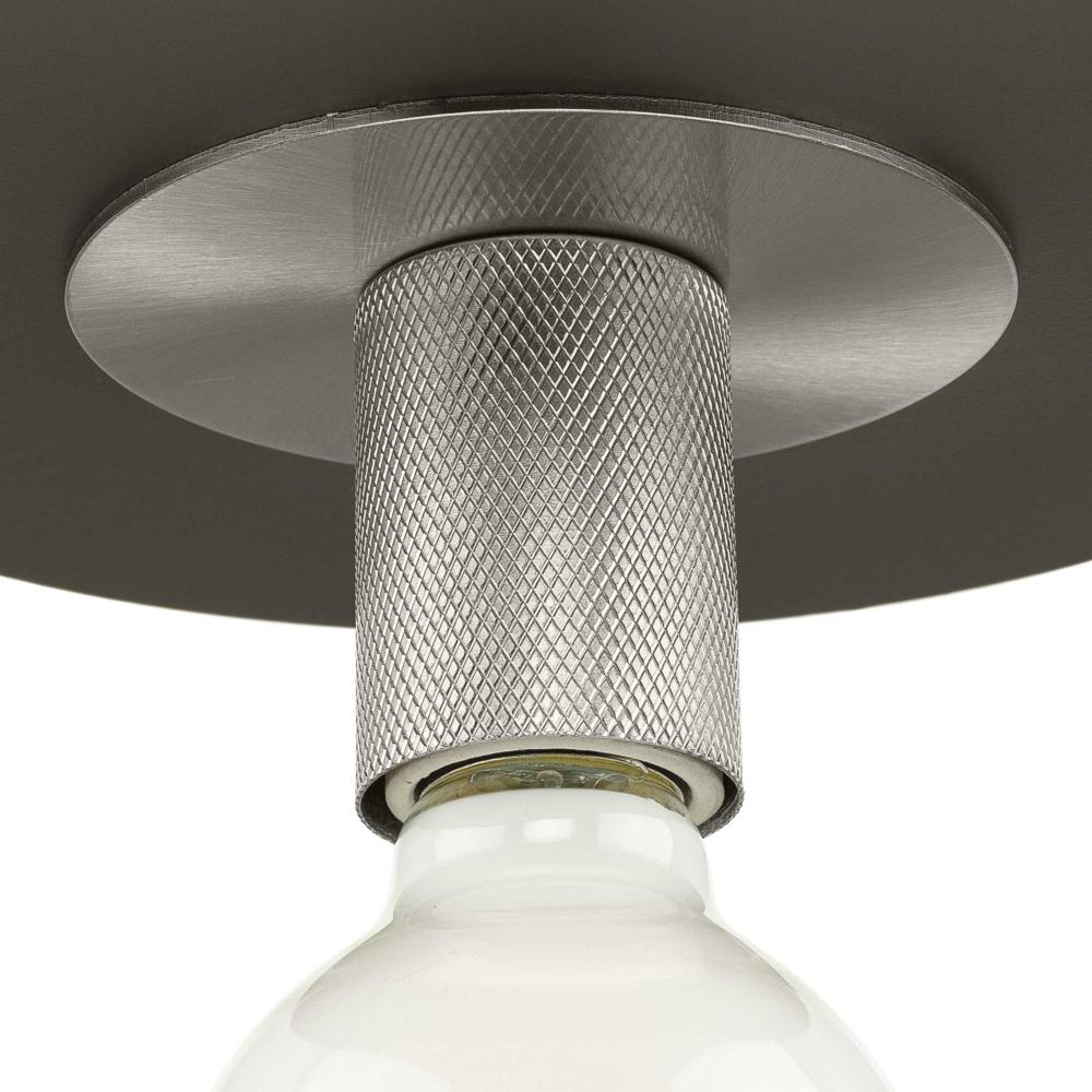 A flat disc shade and knurled detailing offer a prominent visual appeal to modern spaces