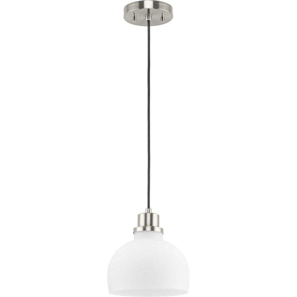 The clean lines of a domed glass diffuser topped with a vintage metal cap finished in subtle brushed nickel give a nostalgic look to the Garris Collection. A simple cord suspension and a etched glass shade offers a stylish modern touch to transitional and modern farmhouse interiors. Install singly or in multiples to provide crisp task illumination to kitchen islands, bars and bedrooms.