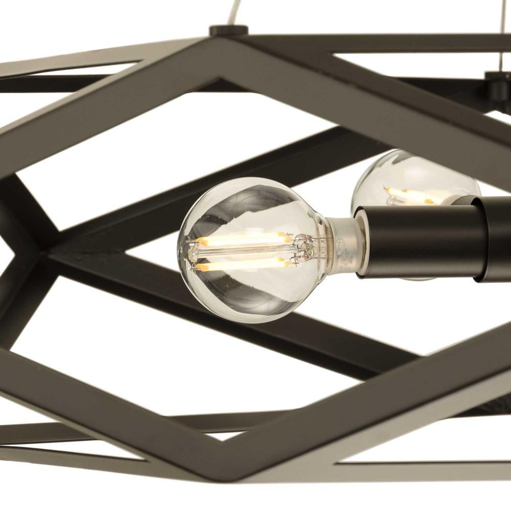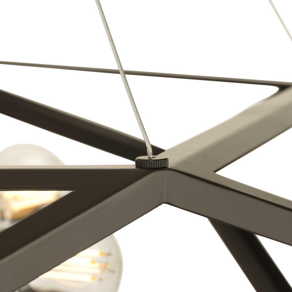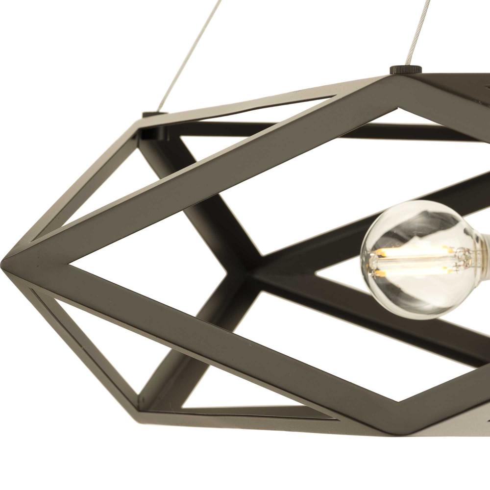 A suspended stem holds the geometrical steel arrangement, allowing the fixture to shine brightly from above