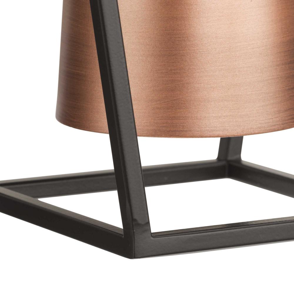 Its open arched frame finished in antique bronze encloses a contrasting shade crafted of painted antique copper metal, ideal for transitional homes and outdoor designs