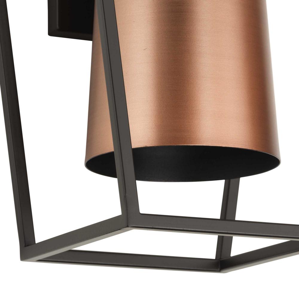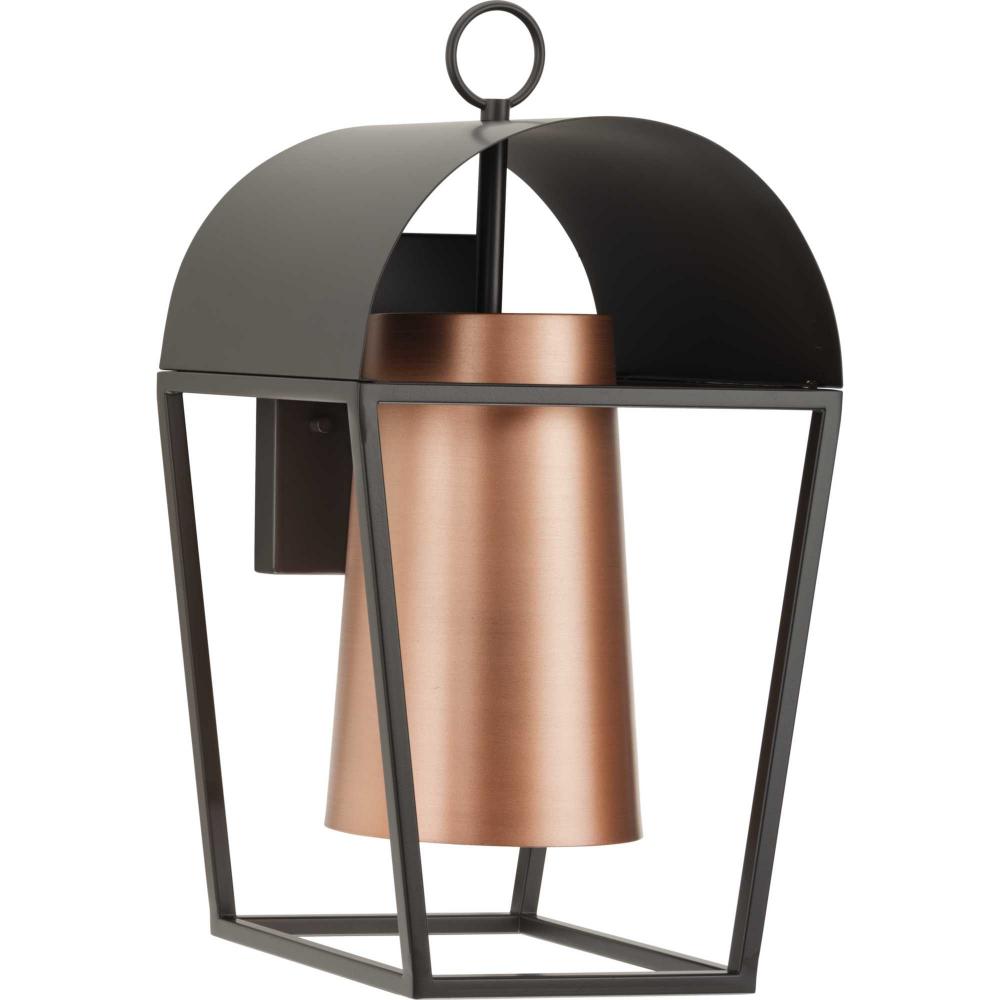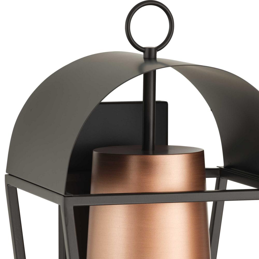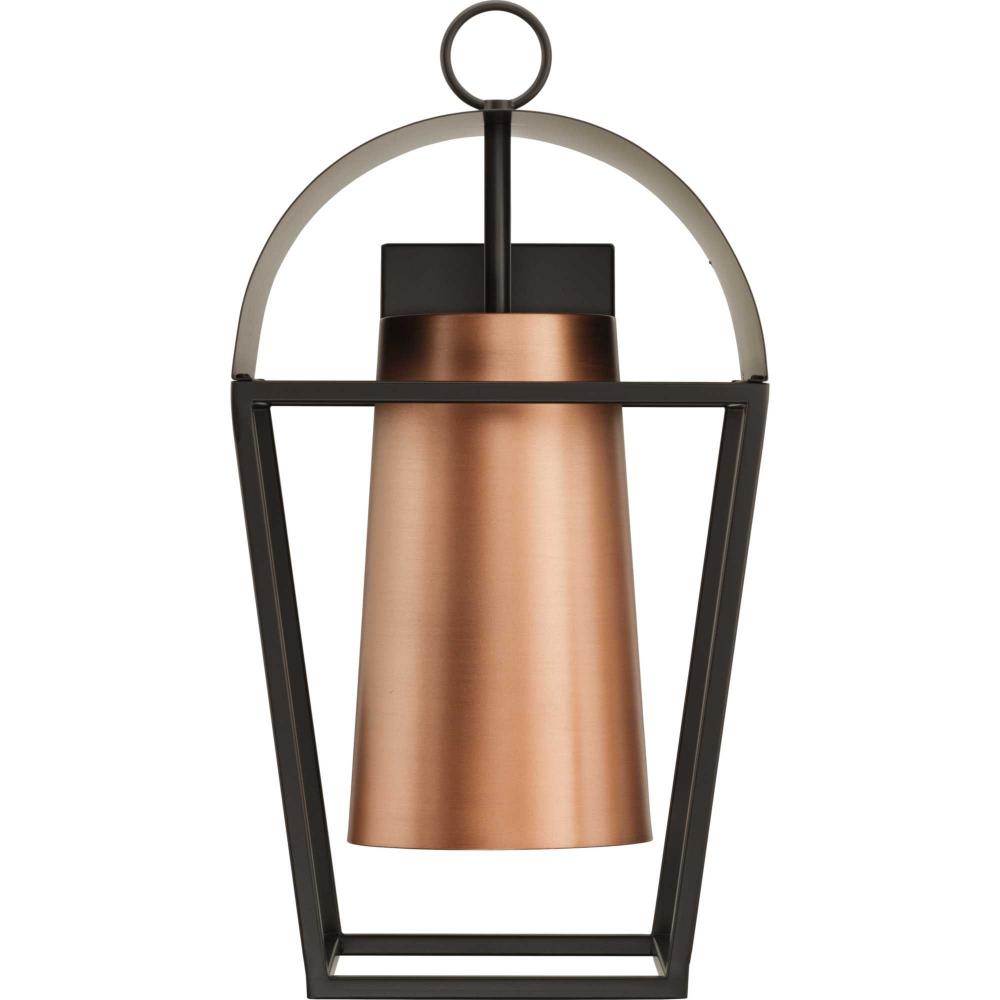 Modern cottage style adorns transitional exteriors in the Hutchence Collection. Its open arched frame finished in antique bronze encloses a contrasting shade crafted of opaque metal and coated in gorgeous painted antique copper. An ample wash of warm light is delicately cast downward from this Dark Sky friendly wall lantern, making it ideal for porches, patios and other outdoor spaces. It is cULus wet location listed for use where water may be present, with a one-year warranty to guarantee your complete satisfaction. Progress Lighting products are designed for exceptional quality, reliability, and functionality.