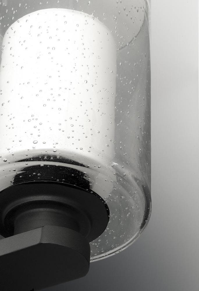 Outdoor lighting adds both beauty and enhances the safety of your home or property. Compel is our new outdoor collection featuring modern forms and layered glass. Etched opal glass within a seeded glass shade offers individuals design flexibility, as fixtures are ideal for exterior settings and in unexpected interior applications. One-Light hanging lantern for outdoor applications in a Black finish.