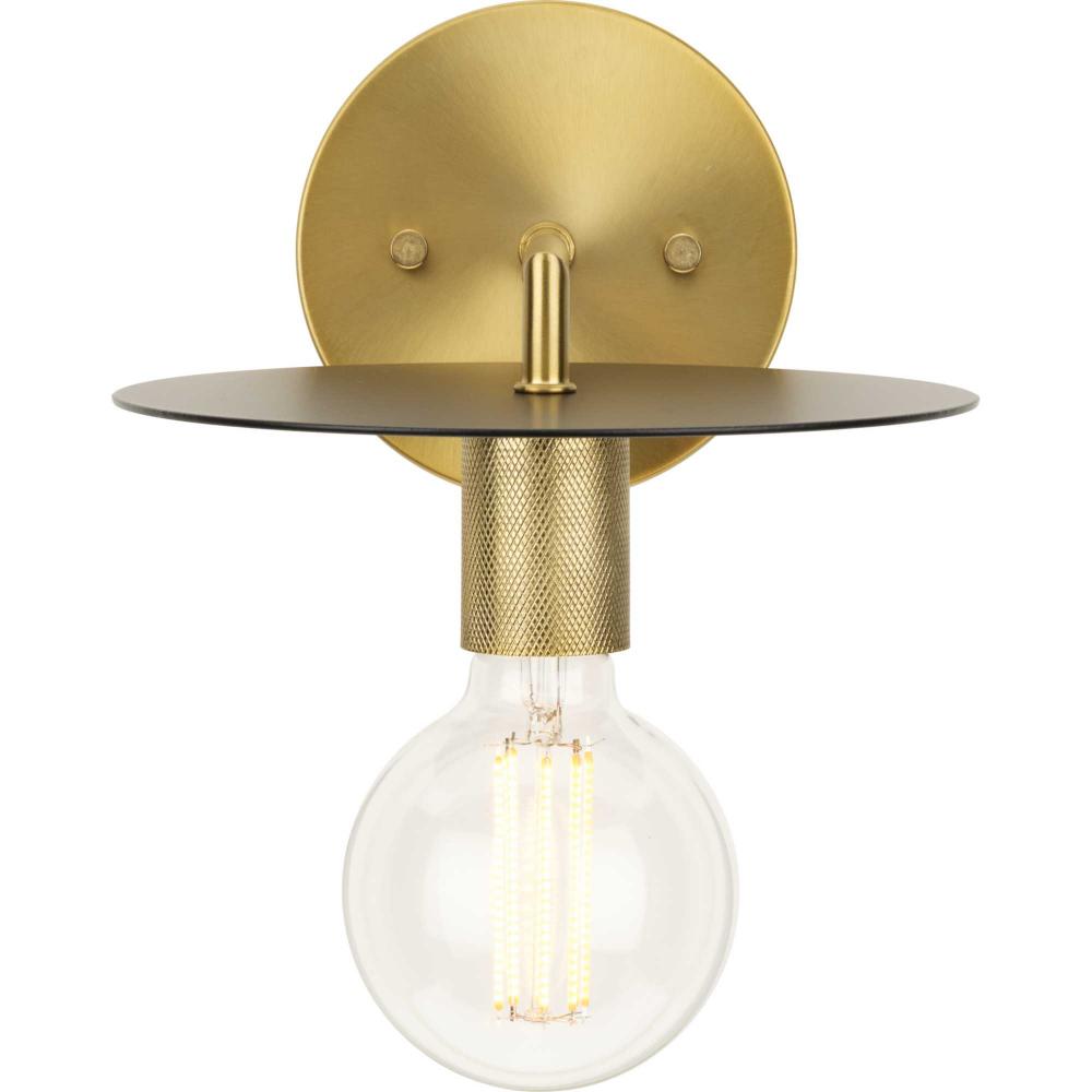 An intriguing flat disc shade forms the basis of the Trimble Collection, whose mid-century modern inspiration is perfect for open spaces in mid-century modern and luxe industrial settings. A two-toned finish on the shade features smooth brushed bronze and classic matte black plus a knurled metal lamp socket and round backplate are coated in brushed bronze providing additional rich visual interest. Use vintage-style bulbs to add modern appeal and to cast crisp illumination to bedrooms and living rooms.