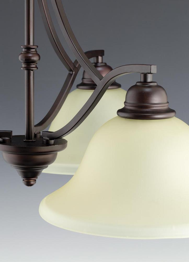 The spirit of craftsmanship prevails with subtle forms. Light umber etched glass shades highlight galvanized metal construction. New pebbles finish offers refreshed look for interior areas.