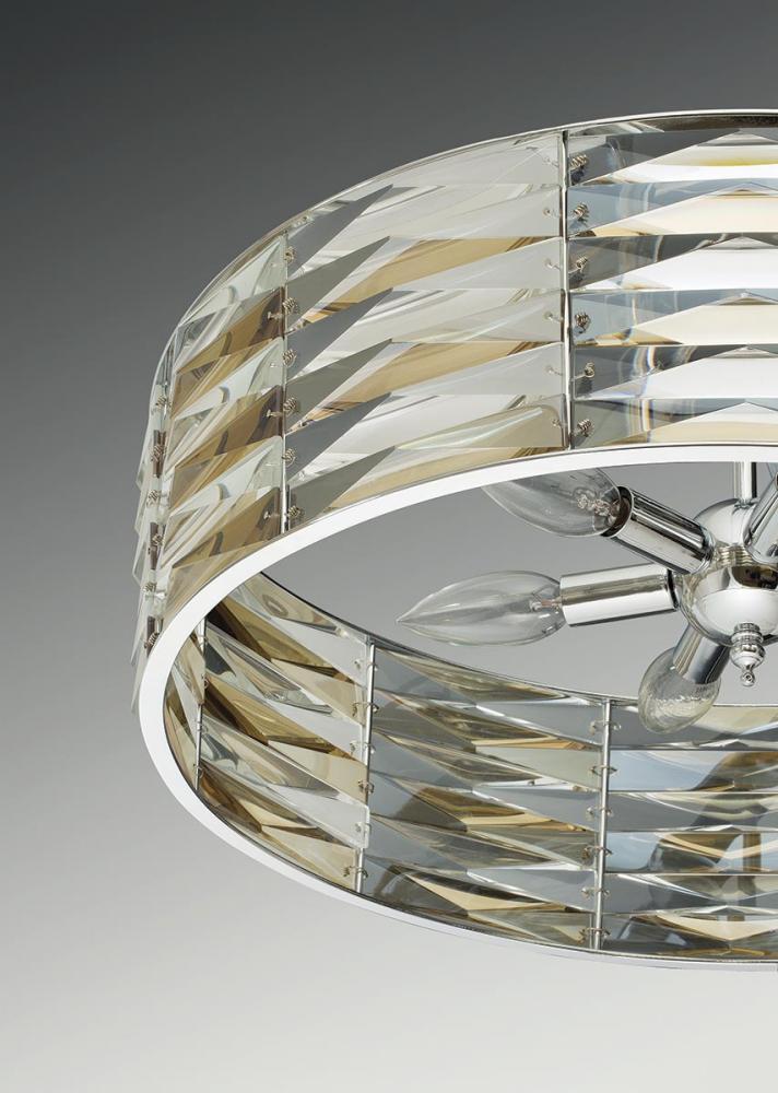 Clear and champagne tinted K9 glass accents.;Sophisticated and glamourous design.;Modern and elegant effect.;Includes two 6", eight 12" stems and 6 links of chain.