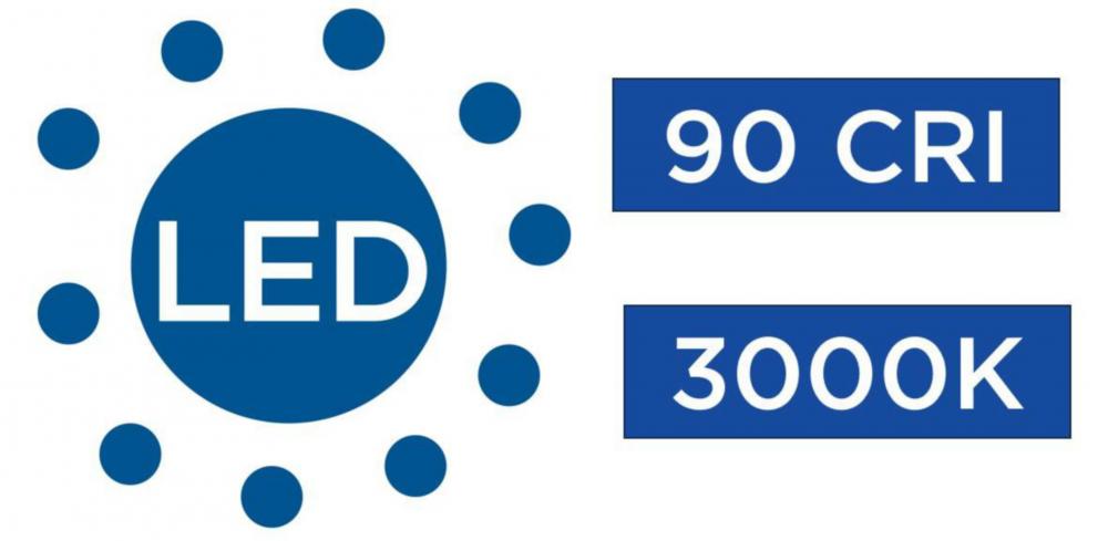 For ideal illumination, an integrated edge-lit LED is included for a total (22w), 3000K, 90CRI, 276 delivered lumens which is dimmable to 10% brightness.