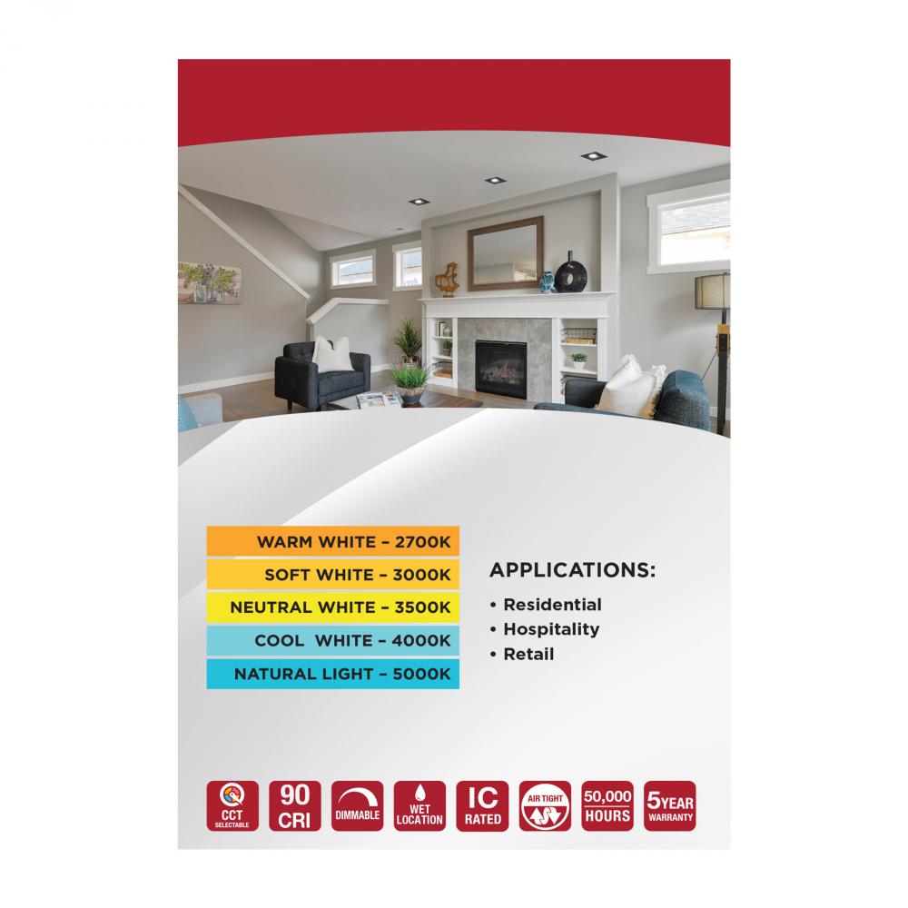 10 Watt LED Direct Wire Downlight; Remote Driver; CCT Selectable; Dimmable; Square; Black Finish