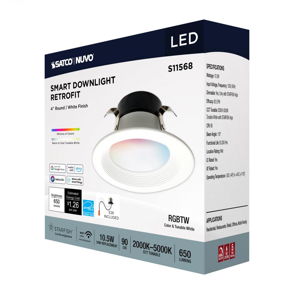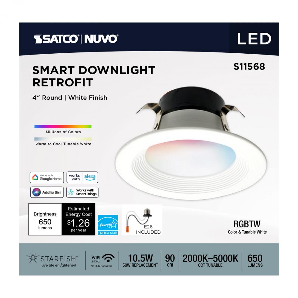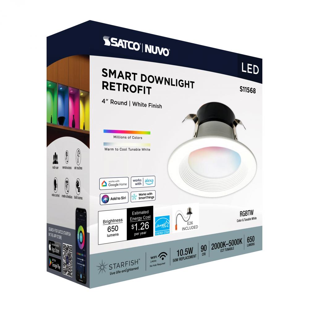 10.5 Watt; LED Retrofit Downlight; 4 Inch Round; Starfish IOT; RGB & Tunable White; 120 Volt; 90 by Satco Products Inc.