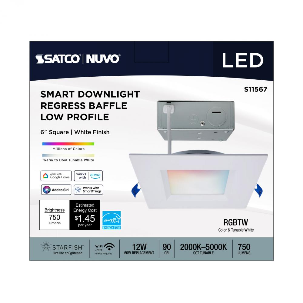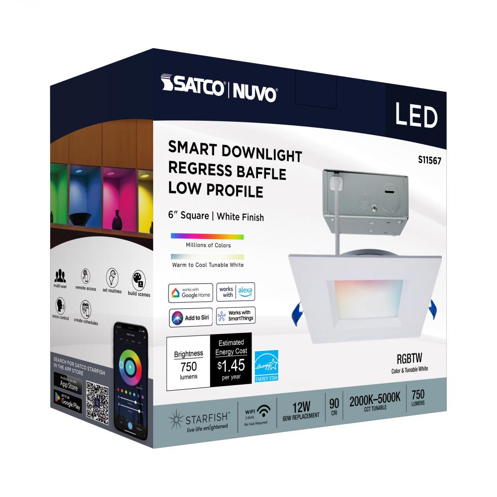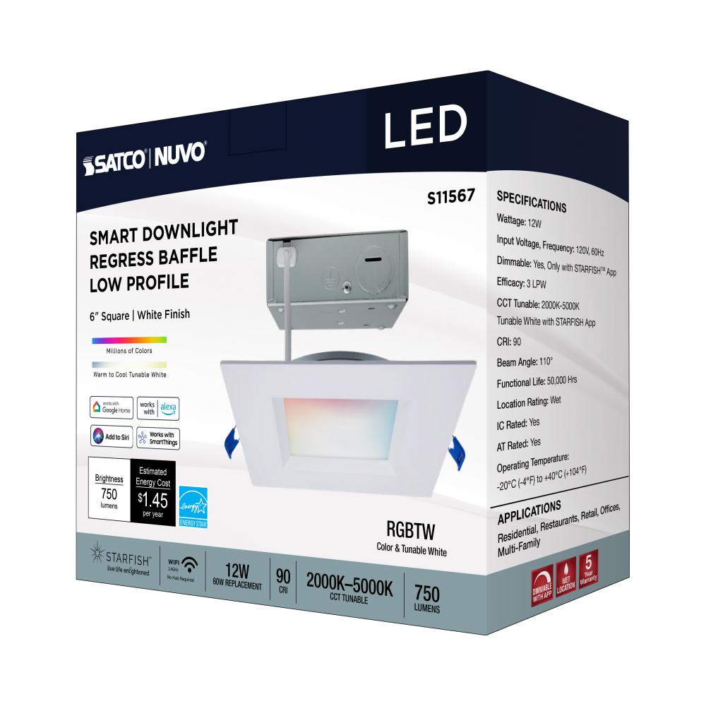 12 Watt; LED Direct Wire; Low Profile Regress Baffle Downlight; 6 Inch Square; Starfish IOT; Tunable by Satco Products Inc.