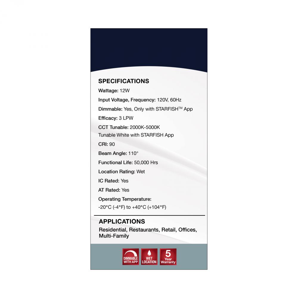 SATCO NUVO's LED Slimfit Downlights with STARFISH technology are the ultimate choice for smart lighting and ambiance control. Download the STARFISH app to customize any tunable white color temperatures from 2000K warm white to 5000K natural light or ch