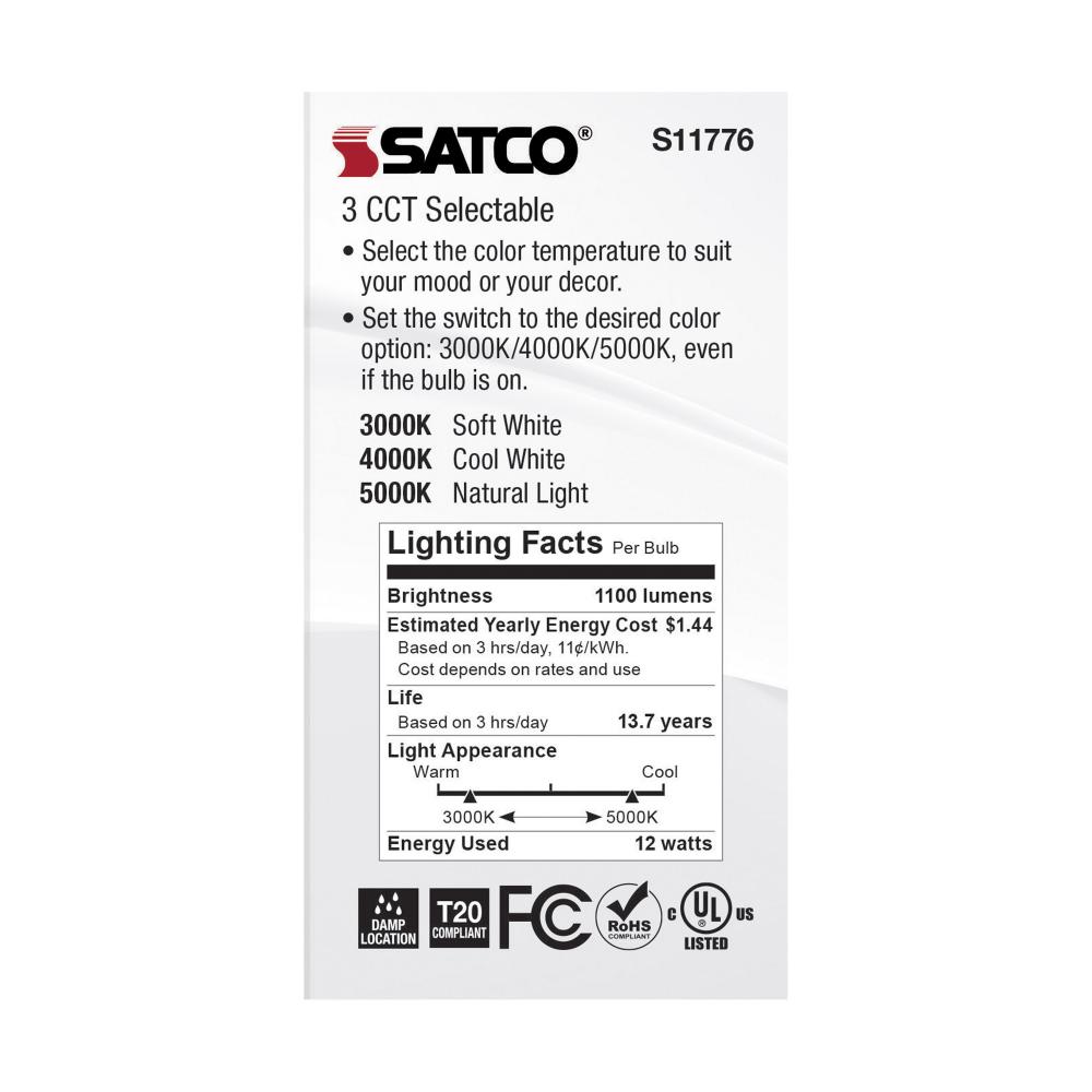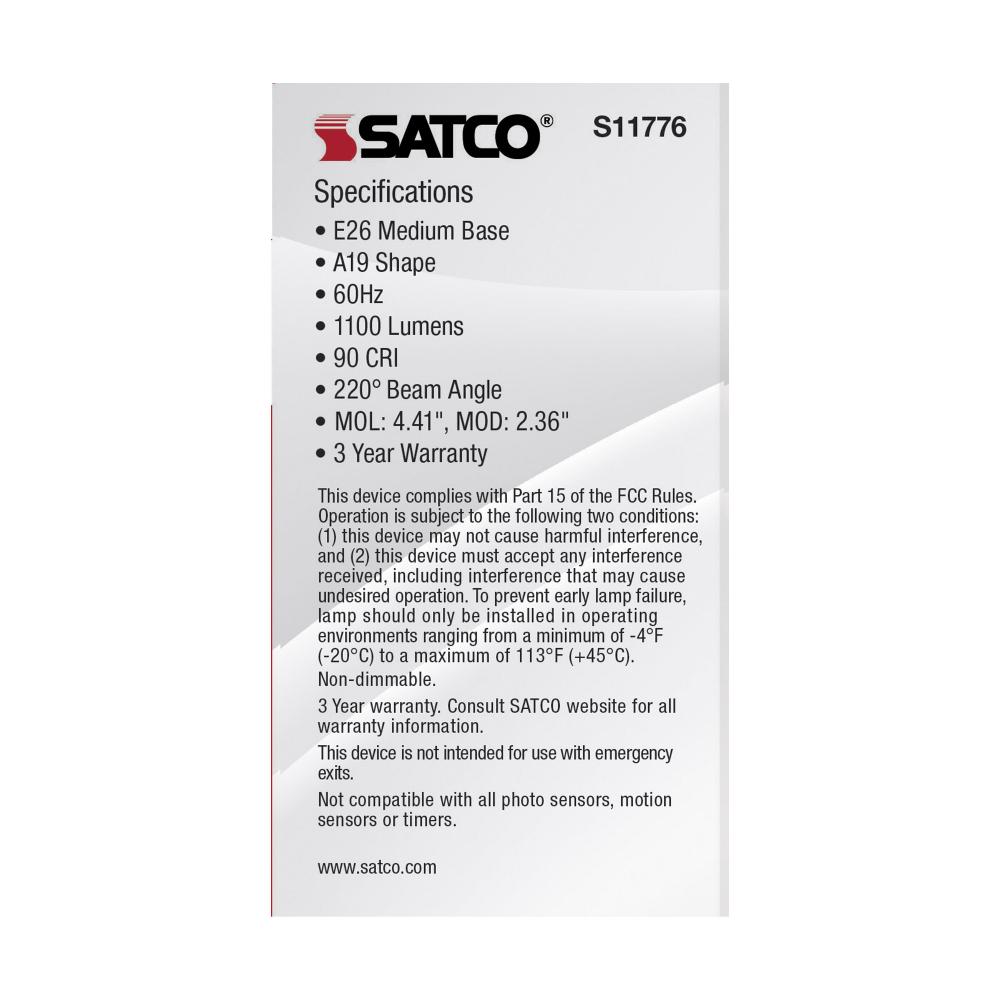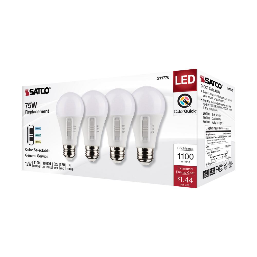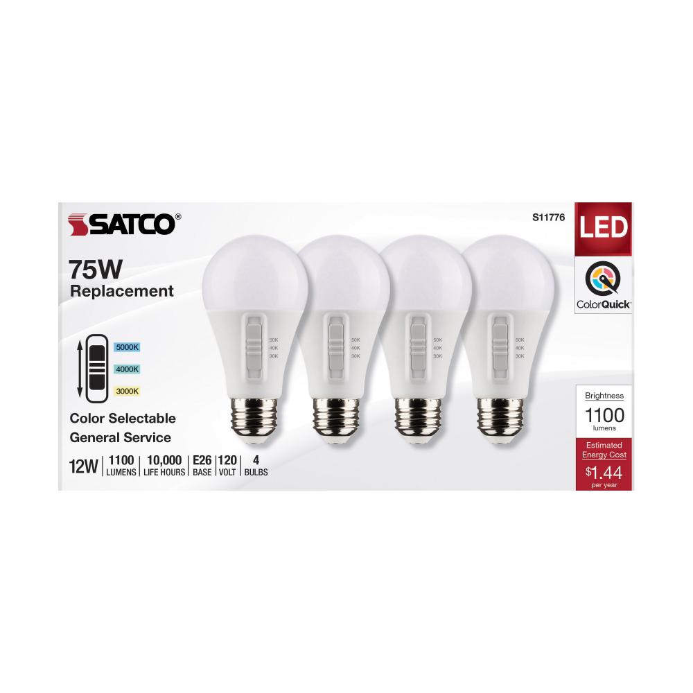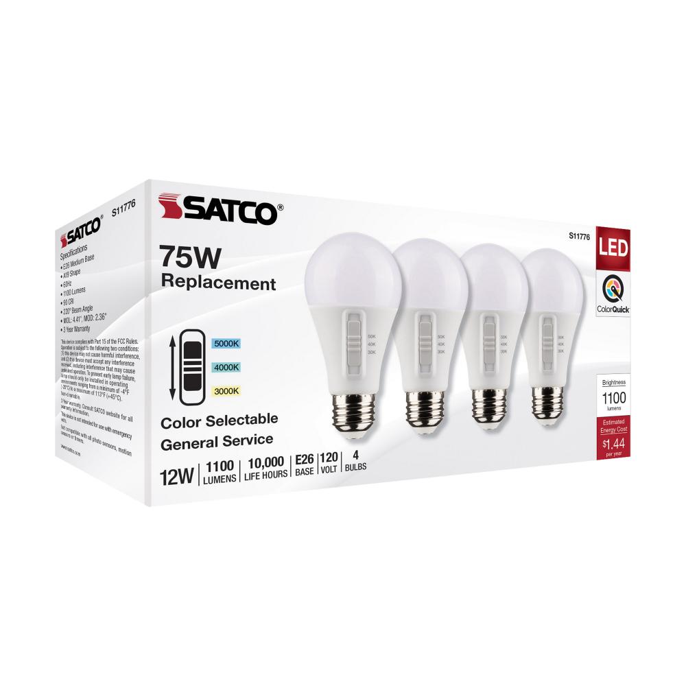 12 Watt A19 LED; Medium Base; CCT Selectable; White Finish; 90 CRI; 120 Volt; 4 Pack by Satco Products Inc.