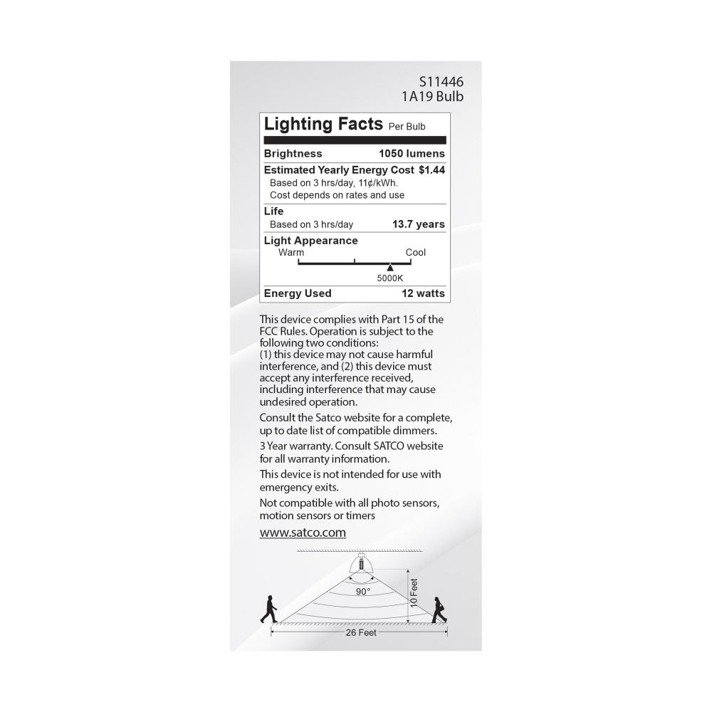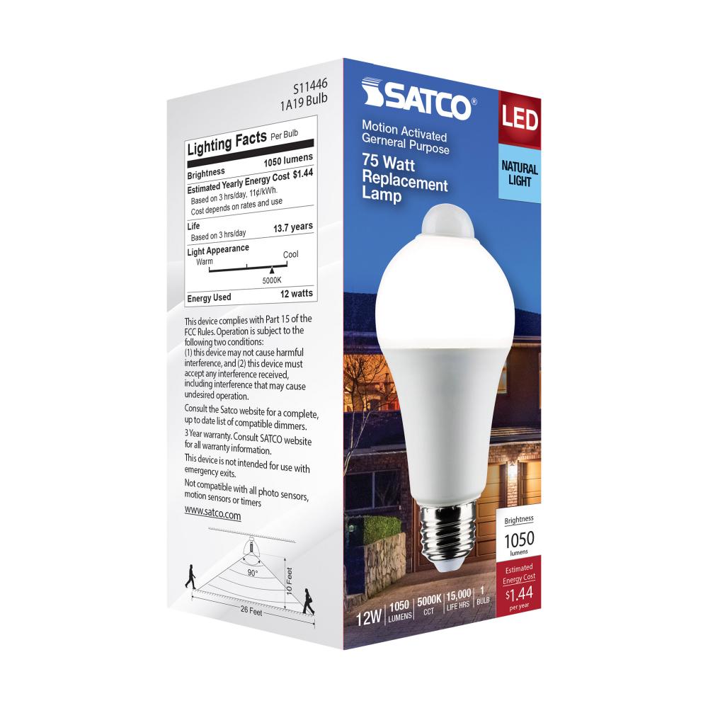 12 Watt A19 LED; White; 5000K; 1050 Lumens; 120 Volt; PIR Sensor; Non-Dimmable by Satco Products Inc.
