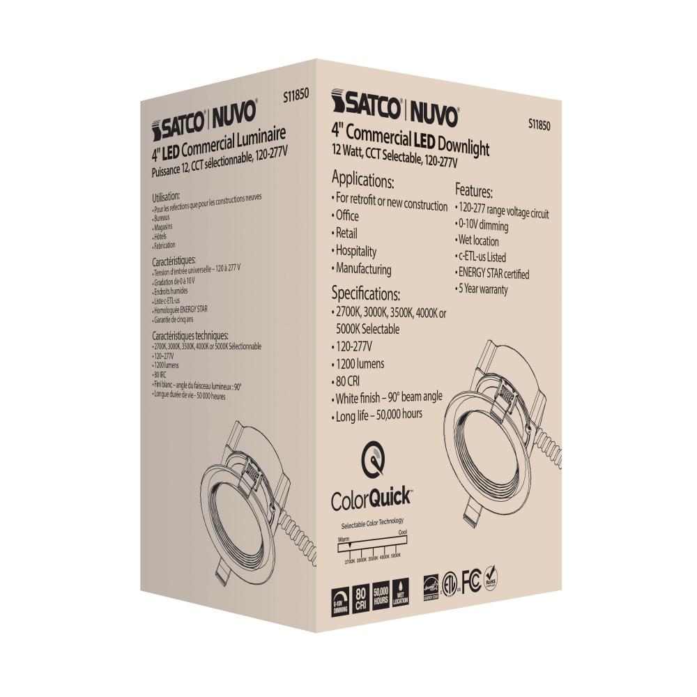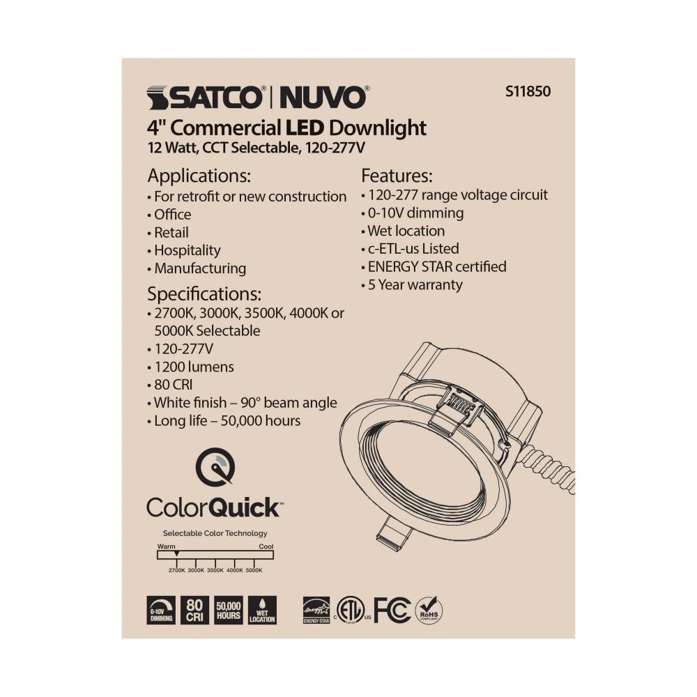 12 Watt Commercial LED Downlight; 4 in.; CCT Adjustable; 120-277 volt; Econo by Satco Products Inc.